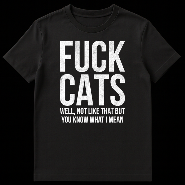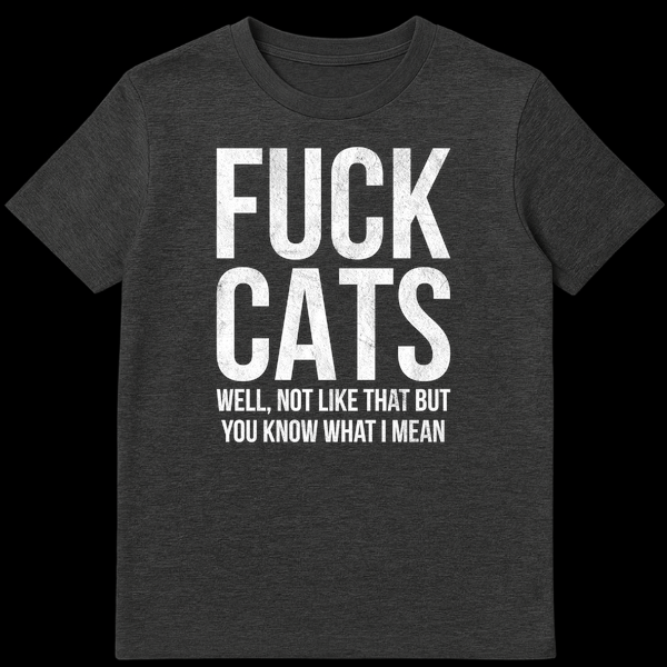 Make a statement that is equal parts shocking and hilarious with this edgy anti-cat graphic tee. The design features bold typography shouting a controversial opinion, only to follow it up with a nervous, laugh-out-loud disclaimer that clarifies your intentions. It is the ultimate icebreaker for parties or casual hangouts where you want to show off your sarcastic side. This shirt is specifically designed for dog people, allergy sufferers, or anyone who simply doesn’t understand the internet’s obsession with kittens. Whether you are looking for a rude gag gift for a friend or just want to express your honest feelings about pets, this offensive humor design delivers the punchline perfectly.