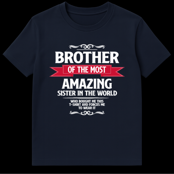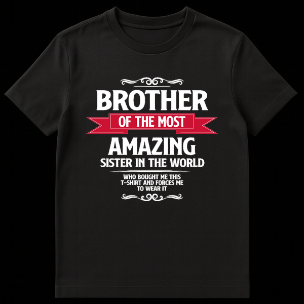 Celebrate the hilarious reality of sibling rivalry with this witty design. The graphic features bold lettering that declares “Brother of the most amazing sister,” only to undercut the compliment with the small print “who bought me this t-shirt and forces me to wear it.” This is the ultimate prank gift for the brother who needs a reminder of who is really in charge. Whether it is for a birthday, Christmas, or National Sibling Day, this shirt combines sarcasm with style. The red ribbon accent draws the eye, ensuring the joke lands every time. Force your brother to wear his affection on his sleeve, quite literally, with this clever and funny graphic tee that is sure to be a hit at family gatherings.