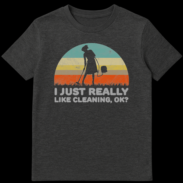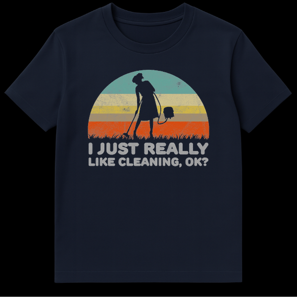 Do you know someone who cleans when they are stressed, bored, or just because it’s Tuesday? This ‘I Just Really Like Cleaning, OK?’ t-shirt captures that obsession perfectly with a side of surreal humor. The design features a classic retro sunset backdrop with a distressed, vintage finish, highlighting a silhouette of a woman taking her vacuum cleaner to the grass outside. It is a laugh-out-loud visual metaphor for people who take cleanliness to the extreme. Made for housekeeping professionals, stay-at-home moms, or anyone who finds peace in a spotless environment, this shirt combines comfort with a witty conversation starter. It makes an excellent birthday or Mother’s Day gift for the person who always has a vacuum in hand.