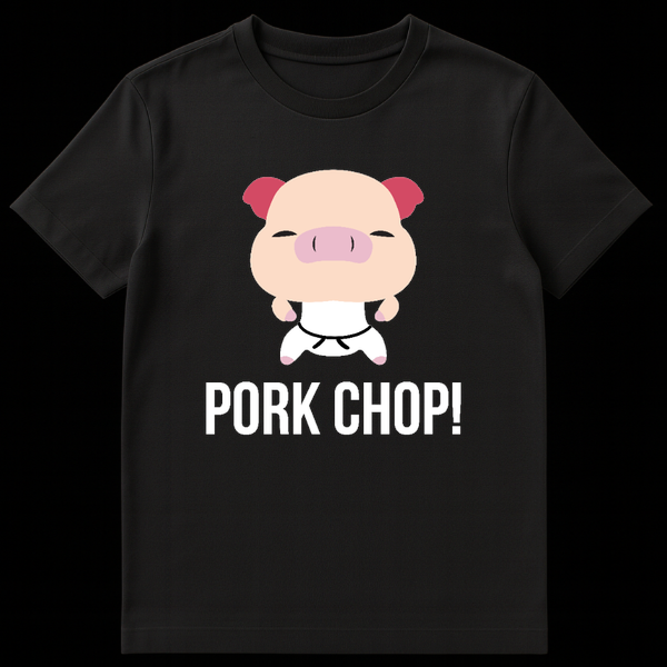 Unleash your inner black belt with this hilarious ‘Pork Chop!’ design featuring a cute cartoon pig in a karate gi. This clever visual pun combines a favorite cut of meat with a classic martial arts move, making it perfect for senseis and foodies alike. It’s an unbeatable gift for karate students, pun lovers, or anyone who enjoys a good dad joke.