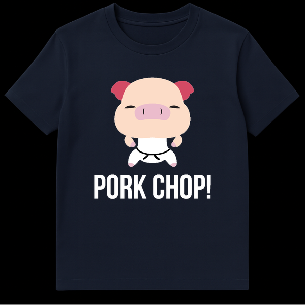 Get ready to kick distinct style into high gear with our hilarious ‘Pork Chop!’ T-Shirt. This design packs a punch of humor by featuring an adorable, serene-looking pig dressed in a traditional white karate gi and black belt, poised in a perfect horse stance. The bold text beneath the character delivers the punchline, turning a delicious dinner option into a formidable martial arts strike. Whether you are a dedicated martial artist, a karate mom, or just someone who appreciates a witty visual pun, this shirt is sure to get laughs at the dojo or the dinner table. It makes a fantastic gift for birthdays, belt promotion ceremonies, or for the pun-loving dad in your life who can’t resist a cheesy joke. Wear it to practice or just to show off your fighting spirit!