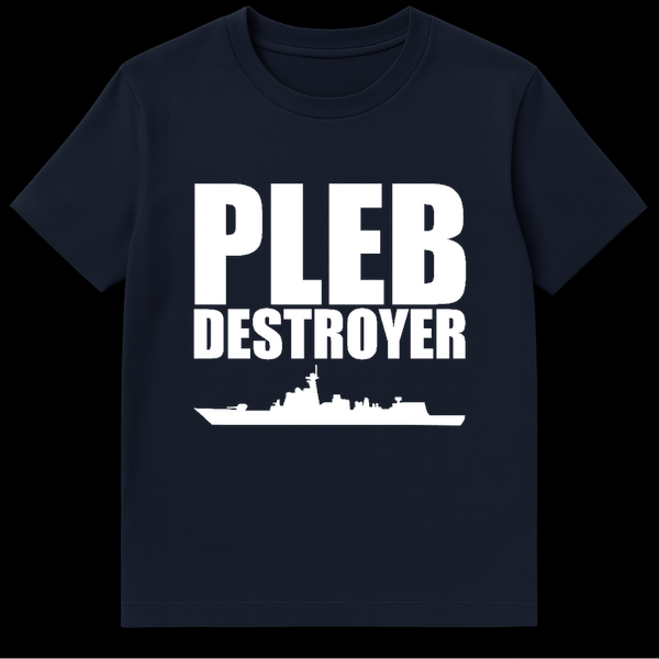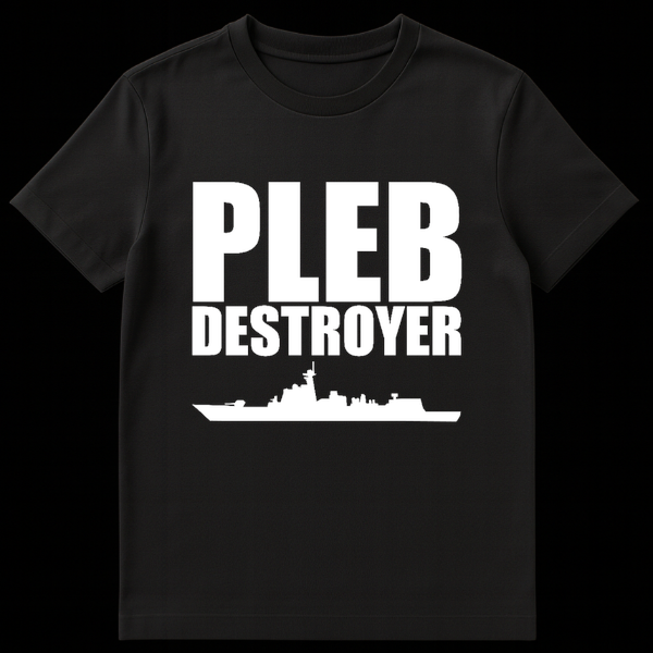 Elevate your wardrobe above the common masses with our ‘Pleb Destroyer’ T-Shirt. This witty design is a masterclass in internet irony, merging the power of a modern naval destroyer class vessel with the sharp tongue of gaming culture. The graphic showcases bold, blocky typography above a detailed white silhouette of a warship, creating a striking look that demands attention. Whether you are an avid World of Warships player, a history enthusiast who loves military hardware, or just an internet veteran who loves calling out ‘plebs,’ this shirt is your new uniform. It makes a fantastic, humorous gift for the hardcore gamer in your life who takes their rank seriously. Wear it to LAN parties, conventions, or just while browsing forums to assert your dominance.