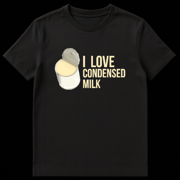 Declare your sweet tooth obsession with this hilarious ‘I Love Condensed Milk’ graphic tee. Featuring a retro, lo-fi illustration of an opened tin can, this design perfectly captures the guilty pleasure of eating straight from the jar. It makes a perfect, quirky gift for bakers, dessert lovers, or anyone who appreciates ironic meme fashion.