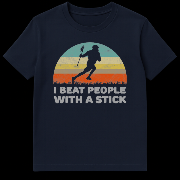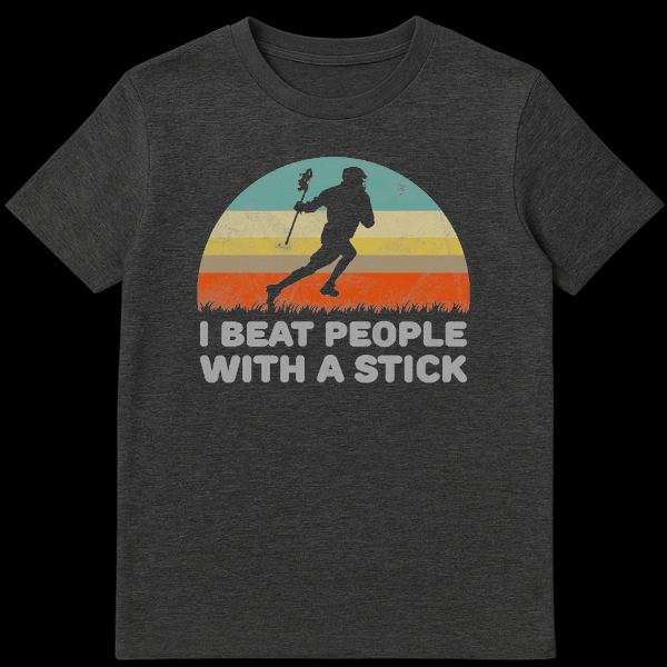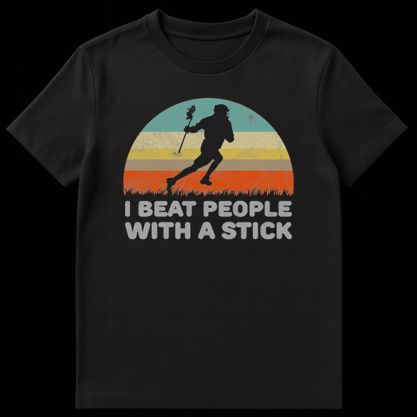 Show off your love for the game with this hilarious retro-style lacrosse design. Featuring a distressed vintage sunset and a silhouetted player, the bold text ‘I Beat People With A Stick’ adds a witty twist on the sport’s physical nature. It is the perfect funny gift for lacrosse players, coaches, and dedicated fans who appreciate a good inside joke.