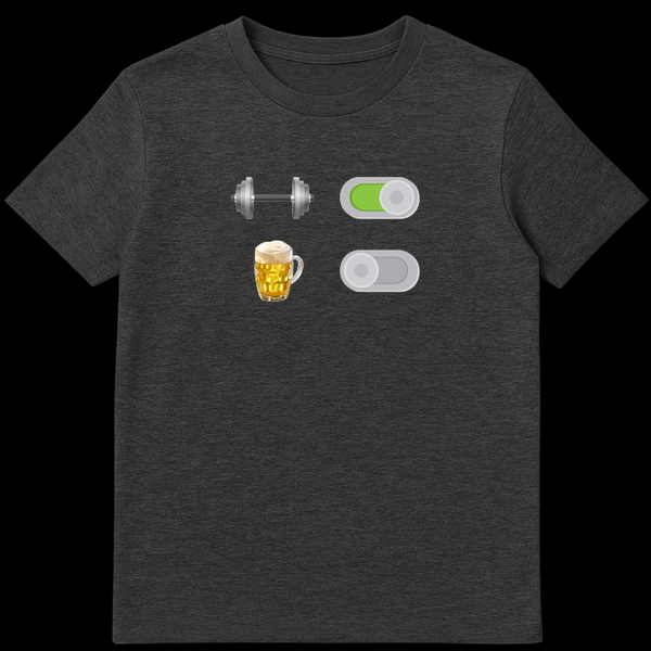 Level up your gym attire with this relatable and humorous fitness design. Using a familiar smartphone settings interface, this graphic visualizes the ultimate lifestyle tradeoff: the dumbbell icon is toggled ‘ON’ in bright green, while the frosty beer mug is strictly toggled ‘OFF’ in grey. It’s the perfect visual representation of sacrifice and discipline. Whether you are prepping for a competition, participating in Dry January, or just focusing on your gains, this shirt speaks for you so you don’t have to. This design makes an excellent gift for personal trainers, gym rats, powerlifters, and anyone who knows that sometimes you have to put down the pint to pick up the weights. Wear it to the gym to show your focus, or out with friends to explain why you’re drinking water tonight.