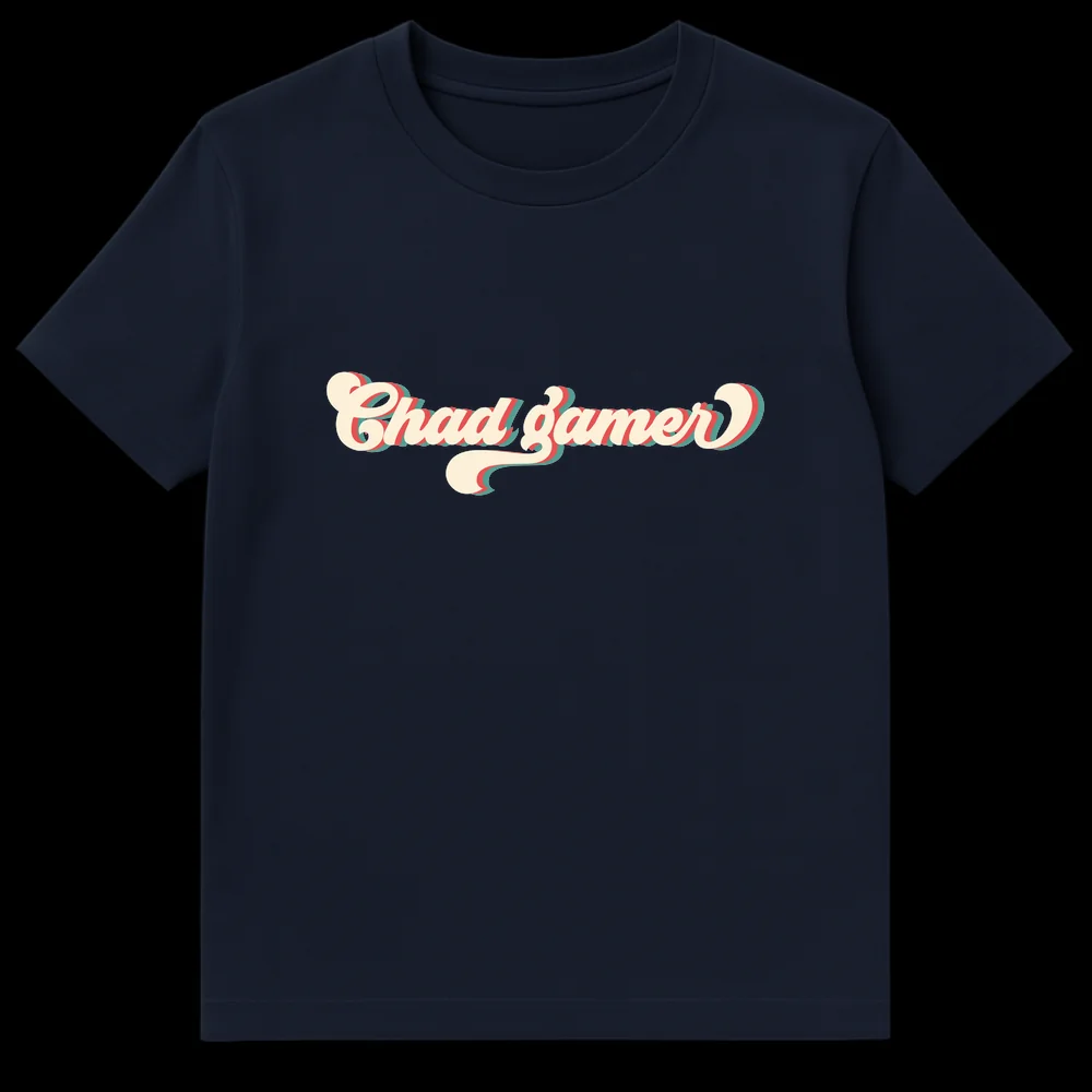 Embrace your inner ‘Chad gamer’ with this iconic retro-styled tee. Featuring a bold 70s/80s script font with cool offset shadows, this shirt playfully references internet meme culture and gaming stereotypes. It’s the perfect humorous gift for any gamer who appreciates ironic confidence or wants to subvert expectations.