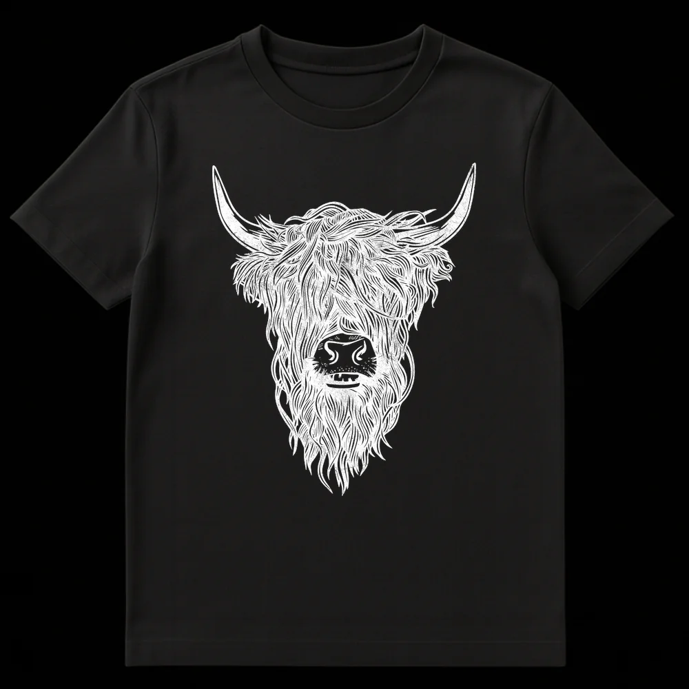 Celebrate the majestic beauty of the Scottish Highlands with this captivating Highland Cow t-shirt. Featuring detailed line art, this design beautifully captures the iconic shaggy-haired cattle in a striking monochromatic palette. It’s a perfect gift for animal lovers, nature enthusiasts, or anyone with a connection to Scottish heritage and rustic charm.