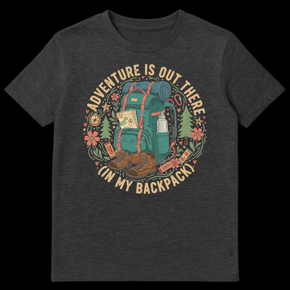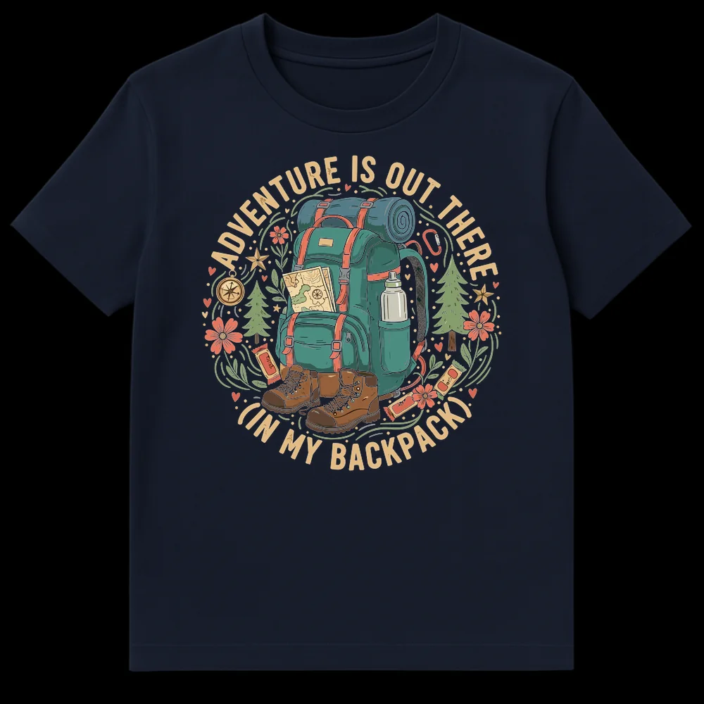 Embrace the spirit of adventure with a witty twist! This unique t-shirt features a detailed, hand-drawn design of a fully packed hiking backpack surrounded by nature elements. The clever phrase “ADVENTURE IS OUT THERE (IN MY BACKPACK)” brings a smile to any outdoor enthusiast who knows the true meaning of preparation. It’s the perfect gift for hikers, campers, and gear lovers who appreciate clever humor and rustic design.