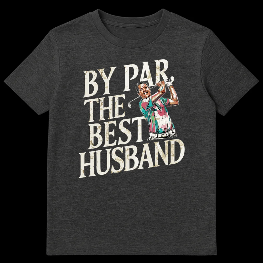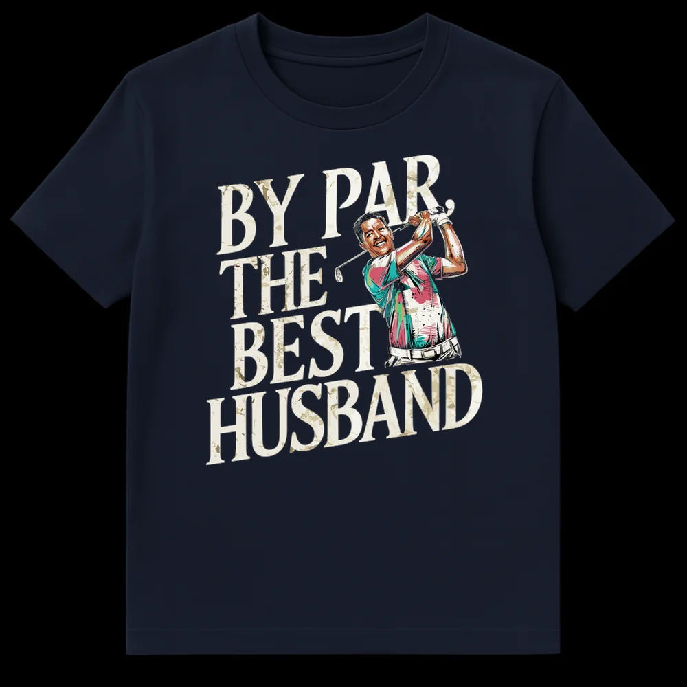 Celebrate the best husband in your life with this clever “BY PAR, THE BEST HUSBAND” golf tee. This design features a vibrant golfer illustration combined with a witty golf pun, playing on “by far” to express ultimate appreciation. Perfect for golf-loving husbands, it makes an excellent gift for anniversaries, birthdays, or Father’s Day.