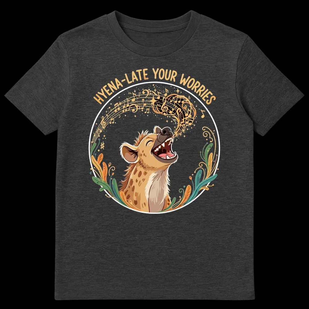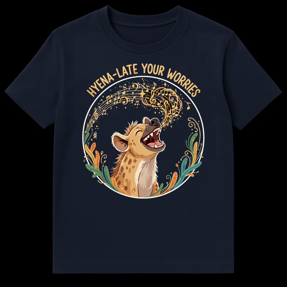 Laugh your worries away with this witty “HYENA-LATE YOUR WORRIES” t-shirt! This clever pun plays on the hyena’s famous laugh, beautifully illustrated with a joyful hyena and musical notes. It’s a perfect gift for animal lovers, music enthusiasts, or anyone who appreciates lighthearted humor and a positive outlook.