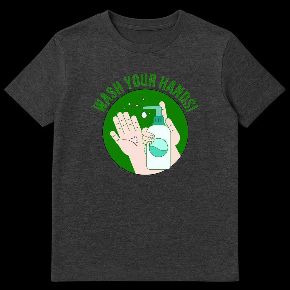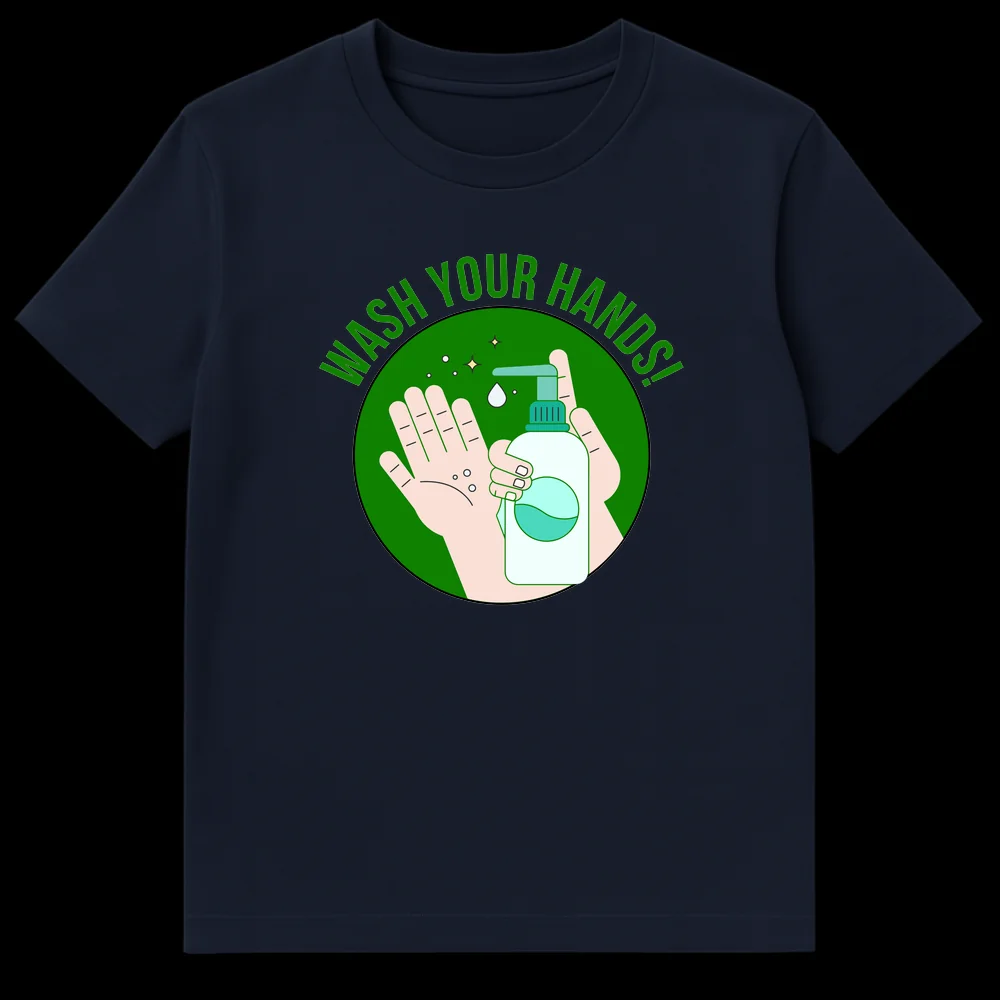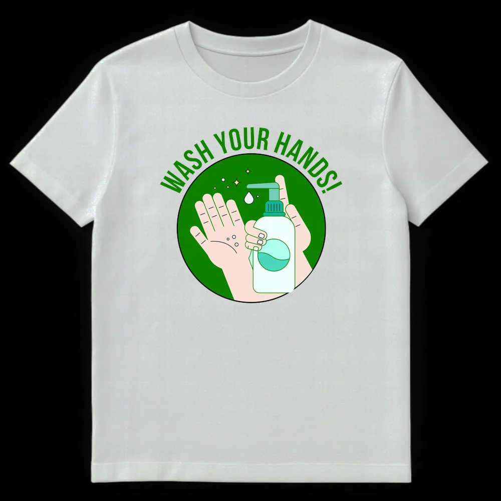 Promote essential health practices with our “WASH YOUR HANDS!” t-shirt. This modern minimalist design features clean line art depicting hands and a soap dispenser, reminding everyone about the importance of hygiene. It’s a clear, positive message for public health, perfect for health-conscious individuals, healthcare workers, or educators who want to encourage good habits.