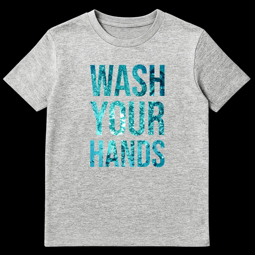 Tags: clean hands apparel, essential worker gift, germ prevention top, hand washing awareness, health advocate clothing, hygiene message, public health t-shirt, self-care hygiene, water bubble texture, wellness reminder