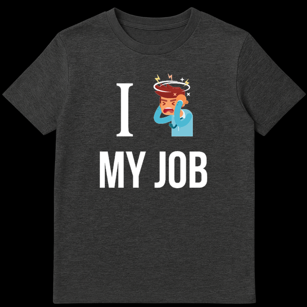 ![Black t-shirt with white text reading I [Image of screaming man clutching head] MY JOB, symbolizing workplace stress on Dark Heather t-shirt](https://pub-804b38d5bdbb4b83ba929fca9613e07e.r2.dev/wp-content/uploads/2025/11/mockup_1337_dark_heather_darkheather600.png)
