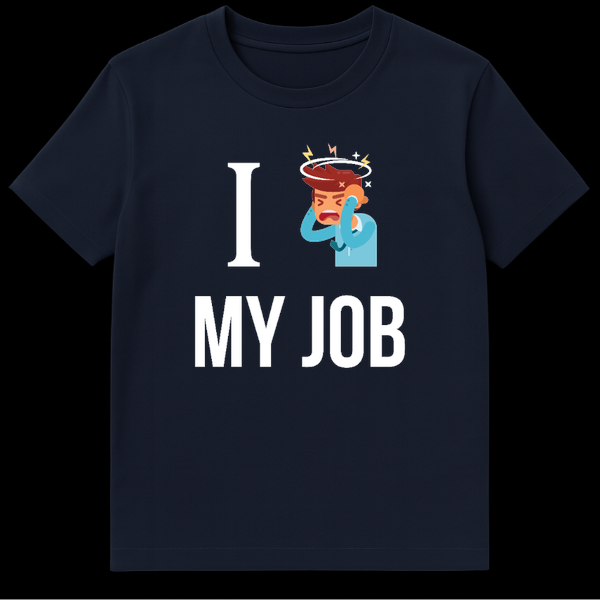 ![Black t-shirt with white text reading I [Image of screaming man clutching head] MY JOB, symbolizing workplace stress on Navy Blue t-shirt](https://pub-804b38d5bdbb4b83ba929fca9613e07e.r2.dev/wp-content/uploads/2025/11/mockup_1337_navy_blue_blue600.png)