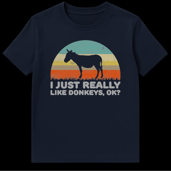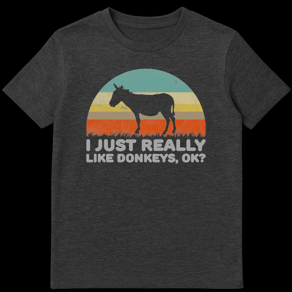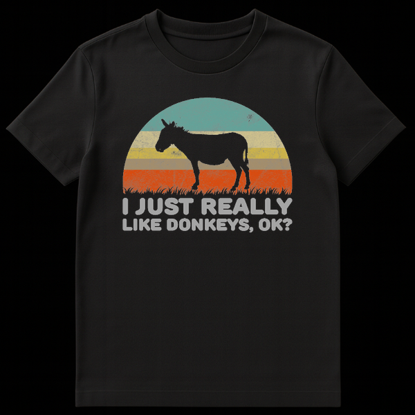 Declare your unique affection with our hilarious “I JUST REALLY LIKE DONKEYS, OK?” t-shirt. This funny design perfectly captures that undeniable love for donkeys, making it an instant conversation starter. It’s the ideal gift for any donkey enthusiast, animal lover, or anyone who appreciates a good laugh and a quirky statement.