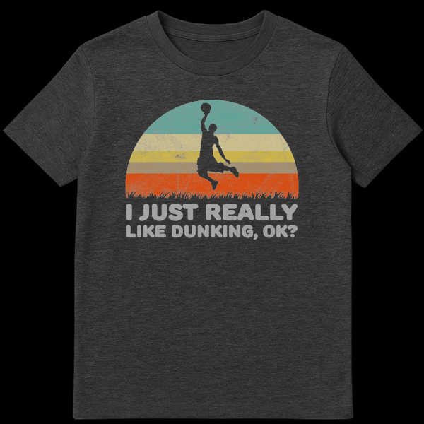 Show off your love for the game with our ‘I JUST REALLY LIKE DUNKING, OK?’ t-shirt, a perfect blend of humor and sports passion. This design speaks volumes for anyone who lives for the thrill of a slam dunk, from the casual fan to the dedicated player. The playful, slightly defensive tone of the text makes it instantly relatable and funny, sparking smiles and conversations wherever you go. Whether you’re on the court, watching a game, or just hanging out, this tee is a fantastic way to express your basketball obsession. It’s an ideal gift for birthdays, holidays, or just because, for basketball players, coaches, or anyone who can’t get enough of the hardwood action. Crafted for comfort and style, this shirt is more than just apparel; it’s a statement of pure, unadulterated dunking joy.