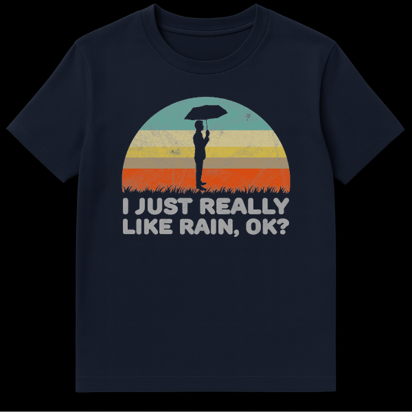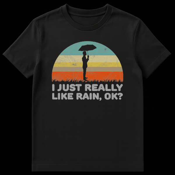 Embrace your inner pluviophile with this hilariously relatable graphic tee. Featuring a vintage-style retro sunset and a silhouette of a figure with an umbrella, the design perfectly captures the cozy vibe of a rainy day. The bold text ‘I JUST REALLY LIKE RAIN, OK?’ adds a touch of sarcastic humor for anyone who prefers storms over sunshine. It’s the perfect gift for weather geeks, introverts, and anyone who loves the smell of petrichor.