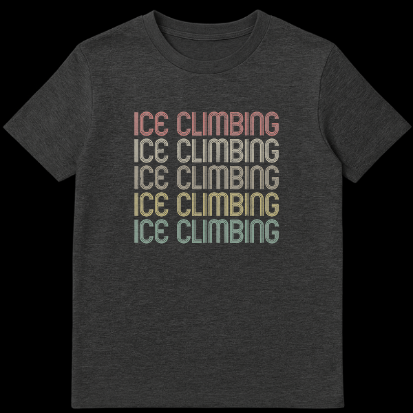 Show your dedication to extreme winter adventures with this unique “ICE CLIMBING” t-shirt. Featuring a bold, retro-inspired typography repeated five times, it’s a stylish declaration of your passion. The gradient colors and distressed finish give it a cool, vintage vibe. Perfect for ice climbing enthusiasts, mountaineers, or anyone who loves unique outdoor-themed apparel.