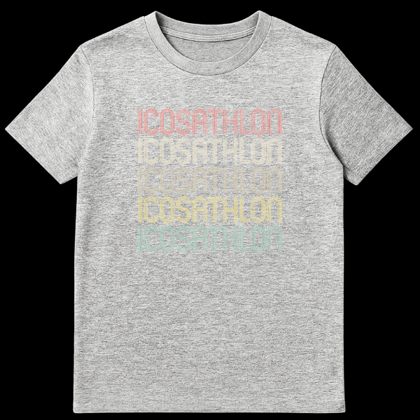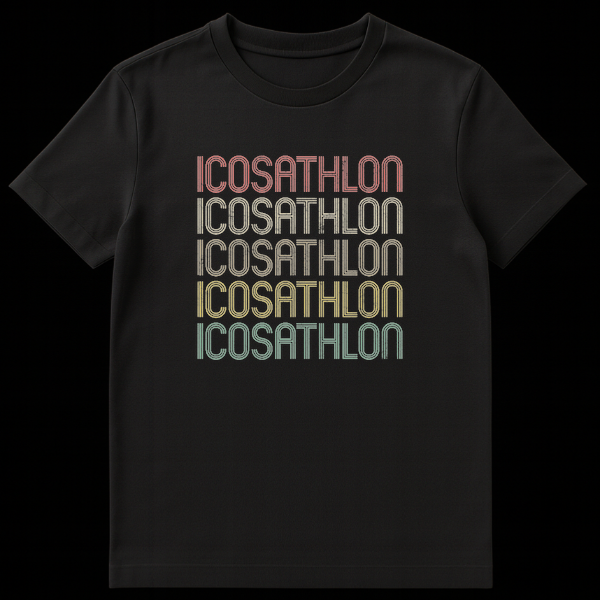 Embrace the ultimate challenge with our Icosathlon T-Shirt! This design features the word “ICOSATHLON” repeated, a clever pun on the decathlon, implying an extreme 20-event competition. Perfect for athletes, endurance enthusiasts, or anyone with a dry wit who jokingly compares their busy life to an epic, never-ending event. It’s an ideal gift for the perpetually active or the humor-loving sports fan.
