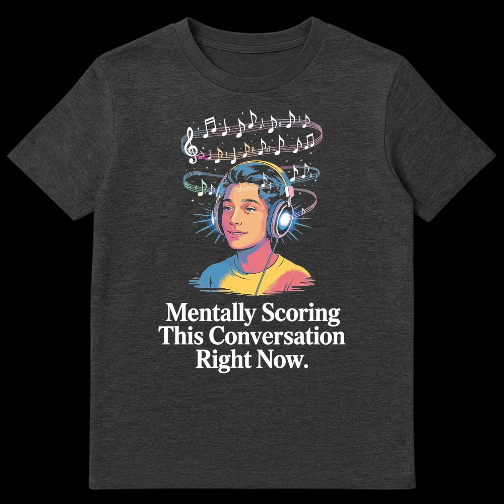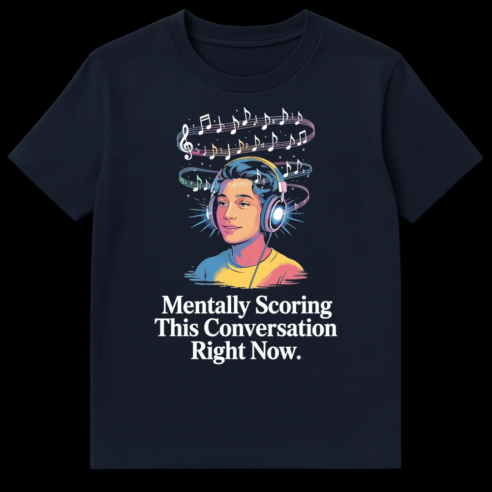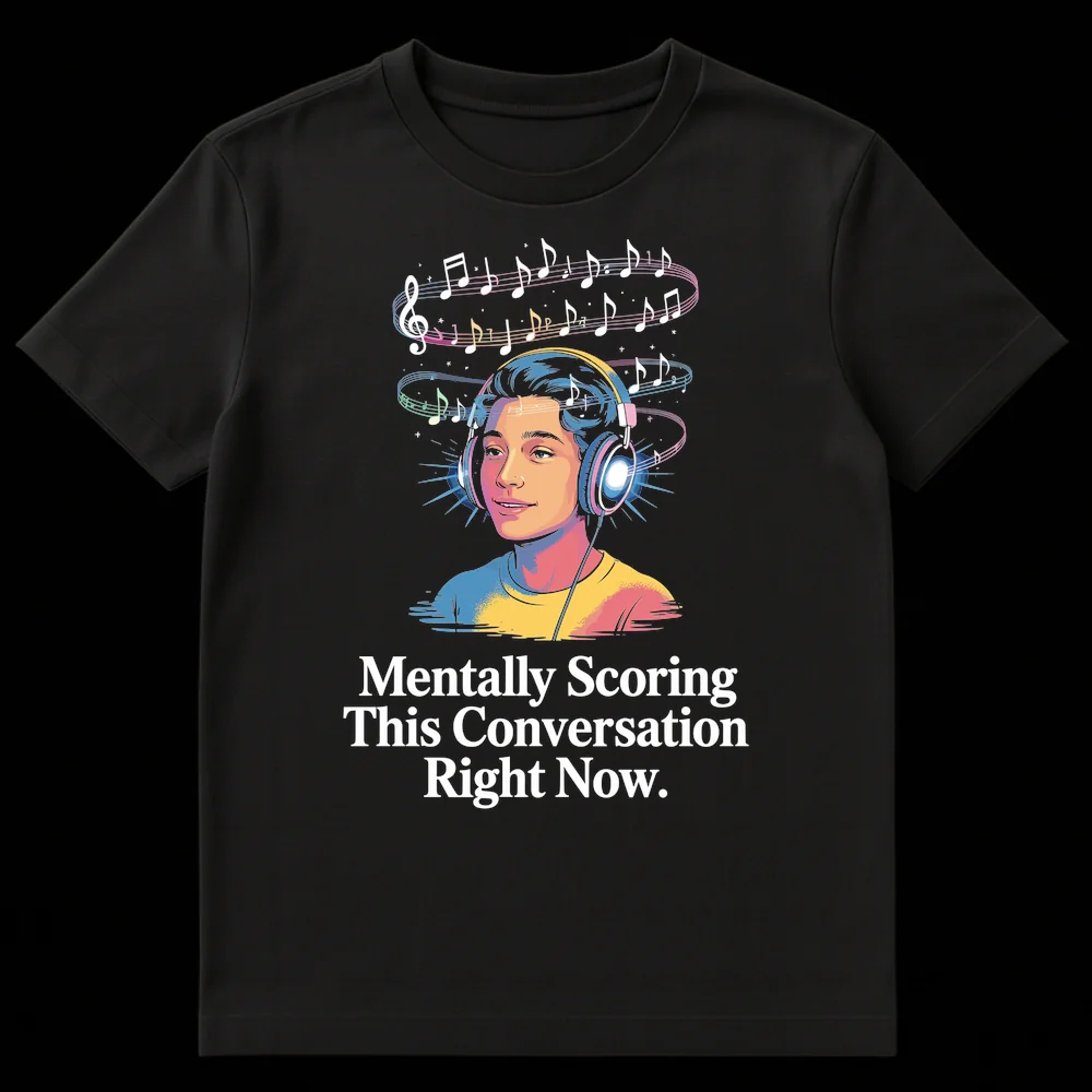 Perfect for the music lover with a sharp wit, this vibrant pop-art tee features the relatable text “Mentally Scoring This Conversation Right Now.” It humorously captures the internal soundtrack we create during mundane talks, blending a musical pun with classic introvert humor. An ideal gift for anyone who appreciates clever sarcasm and expressive apparel.