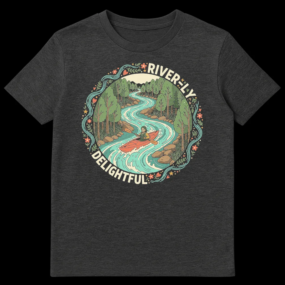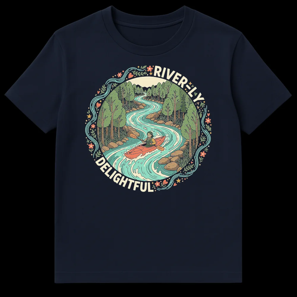 Celebrate the joy of the river with our “RIVER-LY DELIGHTFUL” t-shirt! This design features a whimsical, hand-drawn kayaker actively paddling down a scenic river, framed by charming nature elements. The clever pun plays on “truly delightful,” making it a perfect conversation starter and an ideal gift for kayakers, rafters, or any outdoor enthusiast who loves a good laugh.