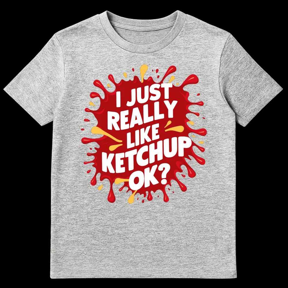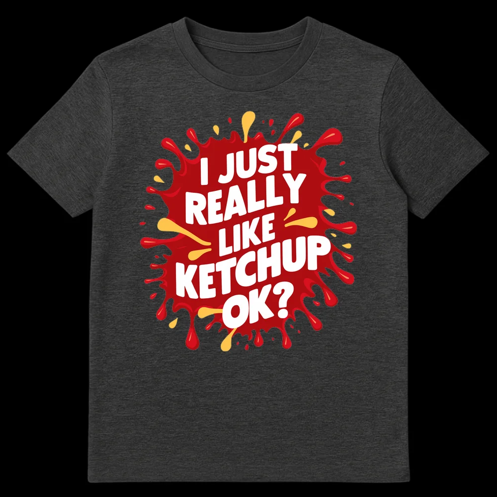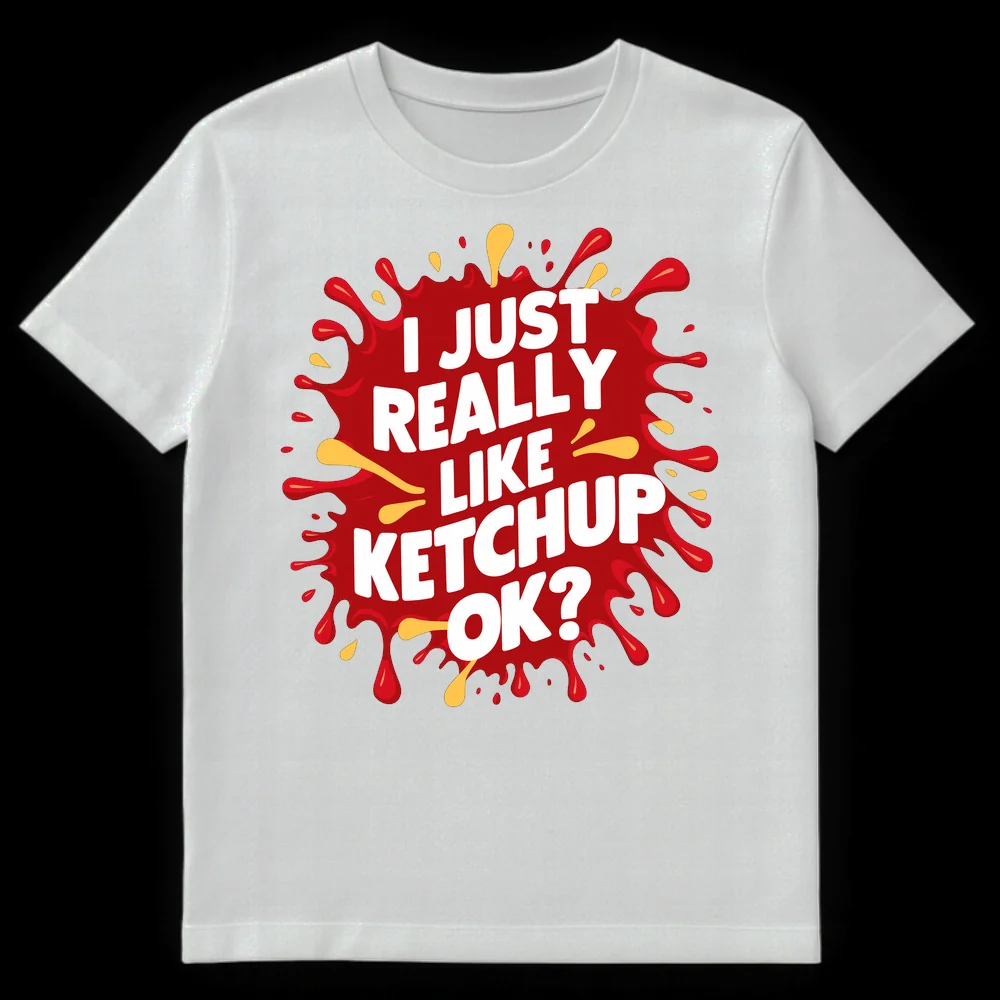 Show the world where your culinary loyalties lie with our hilarious “I JUST REALLY LIKE KETCHUP OK?” t-shirt. This design perfectly captures the essence of a true ketchup enthusiast, featuring a dynamic red ketchup splash graphic with bold, easy-to-read white lettering. The playful addition of “OK?” injects a relatable, self-aware humor, hinting at a slight exasperation that only fellow condiment lovers will understand. Adorned with subtle yellow mustard-like splatters, it’s a vibrant ode to all things delicious. Whether you slather it on everything or know someone who does, this shirt is a fun, assertive, and slightly cheeky statement piece. It’s an ideal gift for foodies, fast-food aficionados, or anyone who proudly embraces their specific (and perhaps excessive) food preferences.