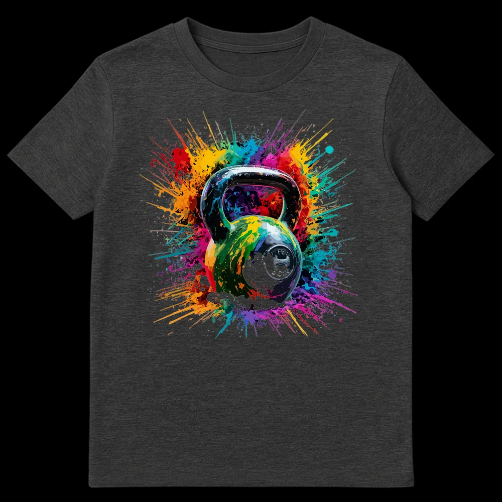 Ignite your workout wardrobe with the Kettlebell Power Splash tee! This design brilliantly fuses the intensity of a kettlebell workout with the vibrant energy of splatter art, creating a truly unique and motivating piece. The central kettlebell, detailed with ‘FEIZ 16 LBS’ on its emblem, appears to burst forth from an explosion of vivid reds, blues, greens, and yellows, symbolizing the powerful release of energy during training. It’s more than just a shirt; it’s a statement of dedication and passion for fitness, celebrating the dynamic spirit of an athlete. Ideal for CrossFit athletes, weightlifting enthusiasts, or anyone who lives an active lifestyle and appreciates bold, artistic expression in their apparel. Gift this energetic tee to inspire and empower!