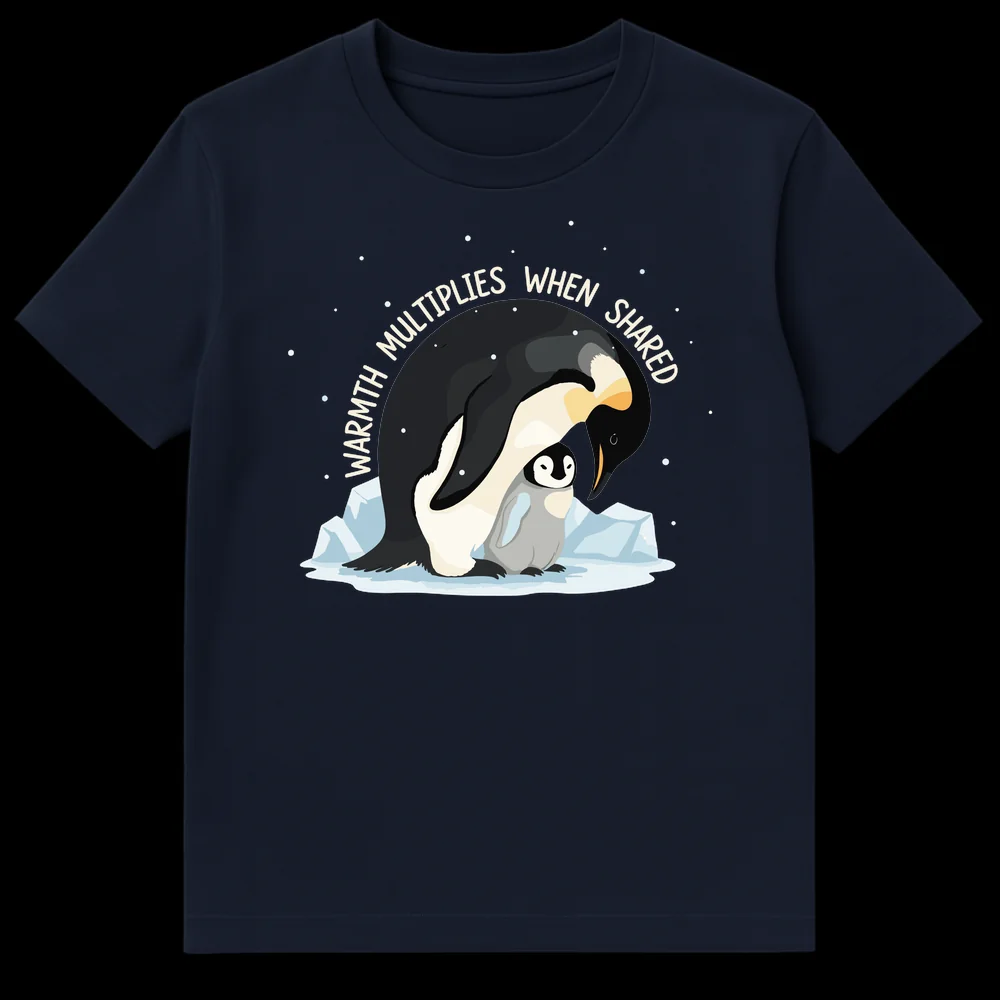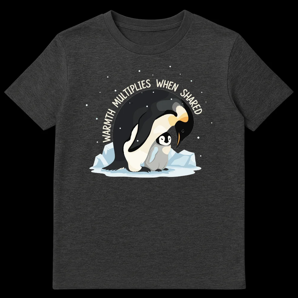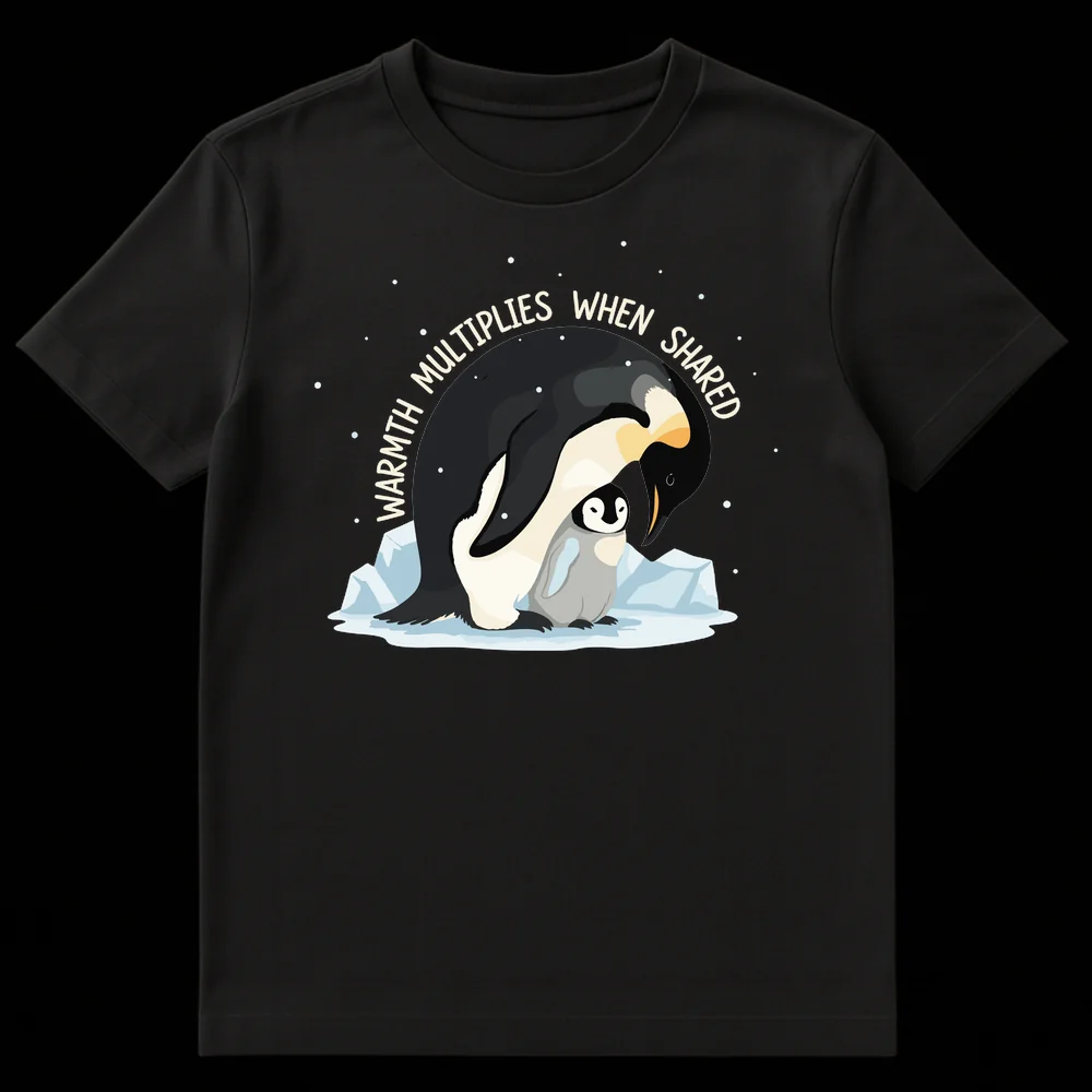Embrace the heartwarming message “WARMTH MULTIPLIES WHEN SHARED” with this charming penguin t-shirt. Featuring a tender illustration of a parent penguin embracing its chick, this design beautifully captures the essence of love, protection, and shared kindness. It’s a perfect gift for animal lovers, parents, or anyone who cherishes heartwarming sentiments and wholesome messages.