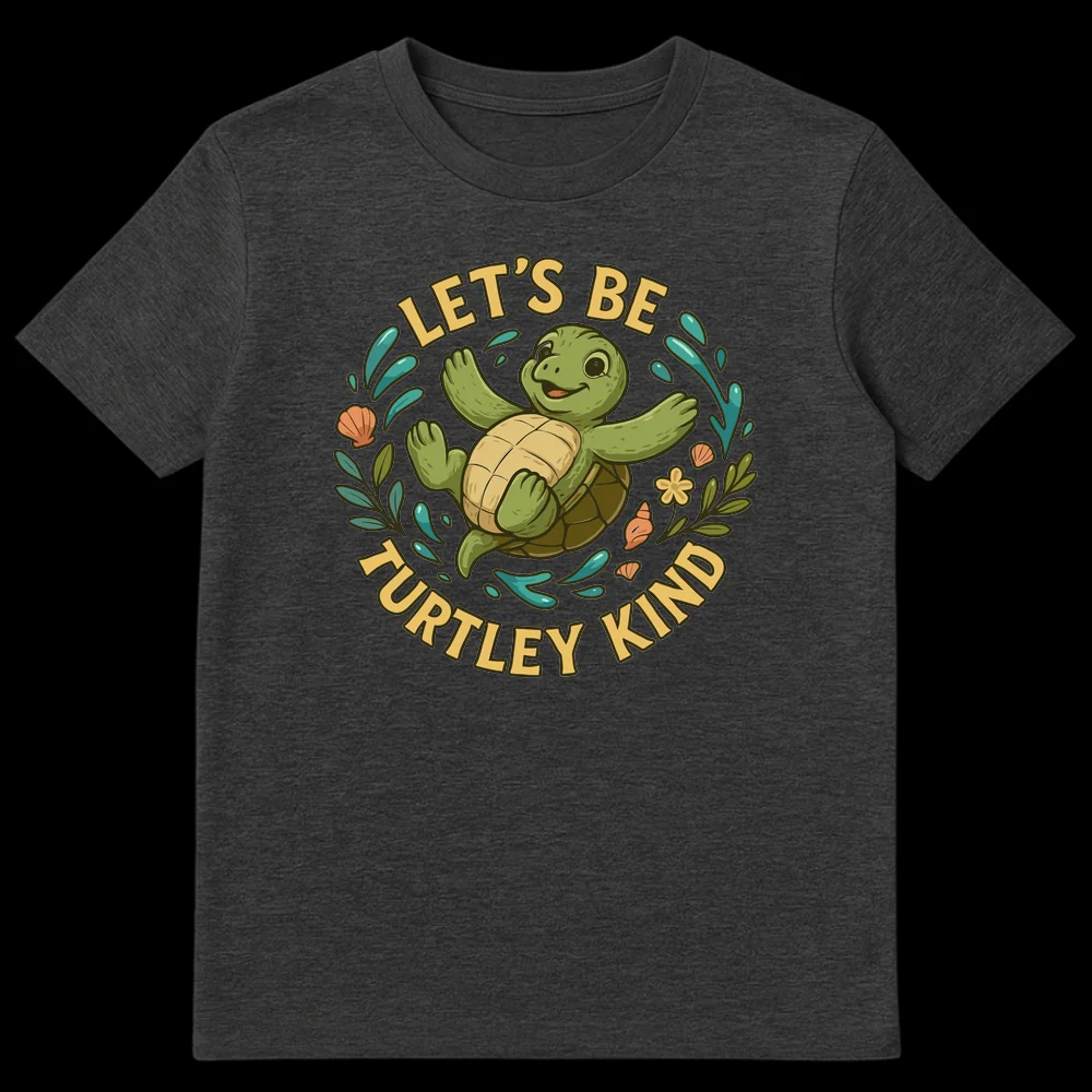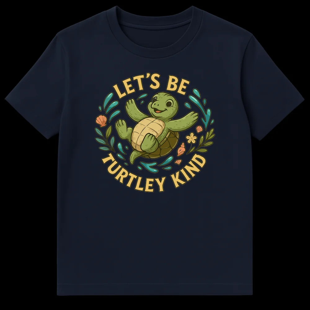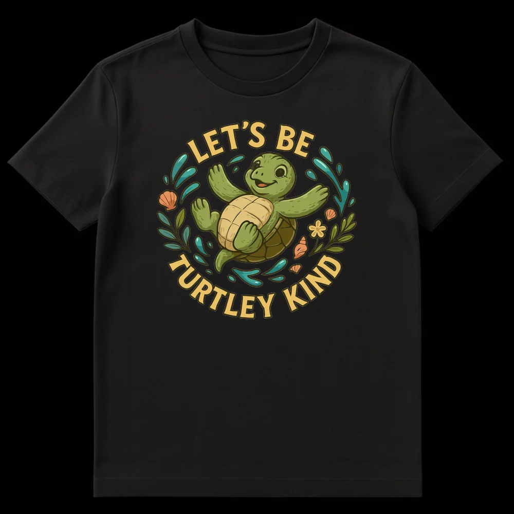 Embrace a wave of positivity with our ‘LET’S BE TURTLEY KIND’ t-shirt, featuring an adorable, joyful sea turtle surrounded by vibrant aquatic elements. This whimsical design cleverly uses a heartwarming pun to spread a message of compassion and good vibes. Perfect for sea turtle enthusiasts, children, or anyone who loves lighthearted humor and advocating for kindness.