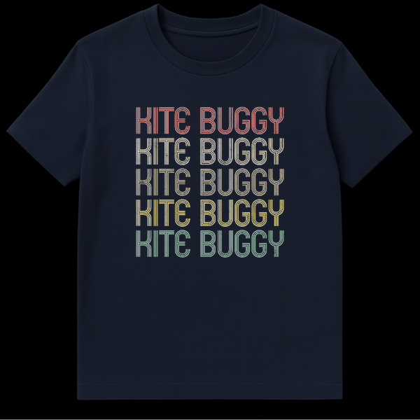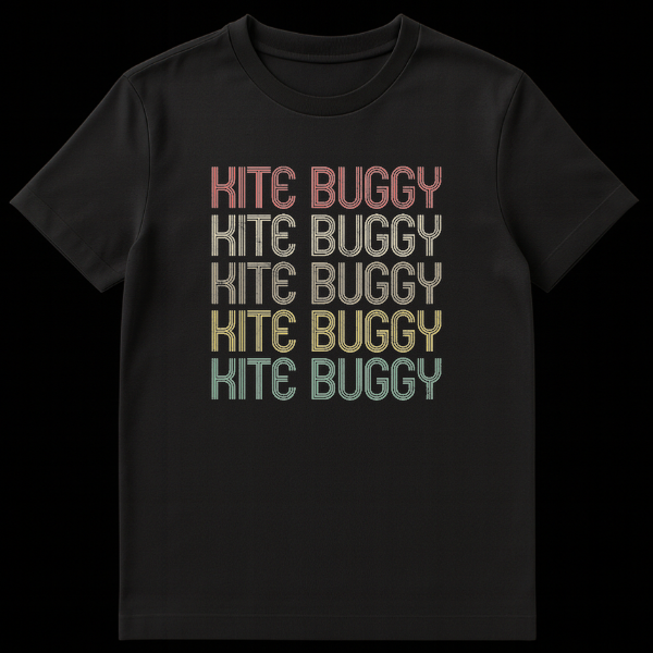 Declare your passion with this retro-inspired Kite Buggy t-shirt. Featuring the phrase “KITE BUGGY” repeated in a stacked, distressed typography, this design channels authentic vintage sportswear aesthetics. It’s a straightforward statement of allegiance to the thrilling wind-powered sport, making it the perfect gift for any kite buggy enthusiast or adventure sports lover.
