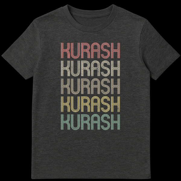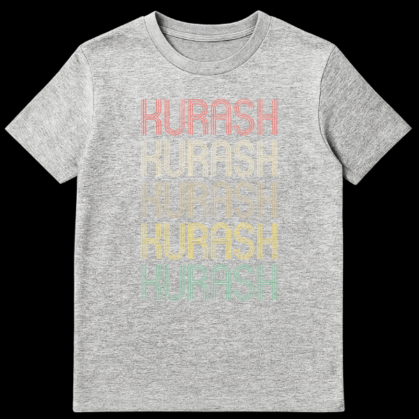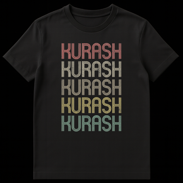 Show your identity with the Kurash Repeated Name T-Shirt. Featuring “KURASH” five times in a distinctive retro typography, this design blends personal connection with a stylish vintage aesthetic. Perfect for those named Kurash, or fans of the Central Asian sport, it’s a unique statement piece and a thoughtful gift.