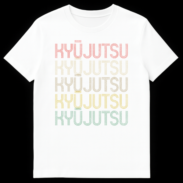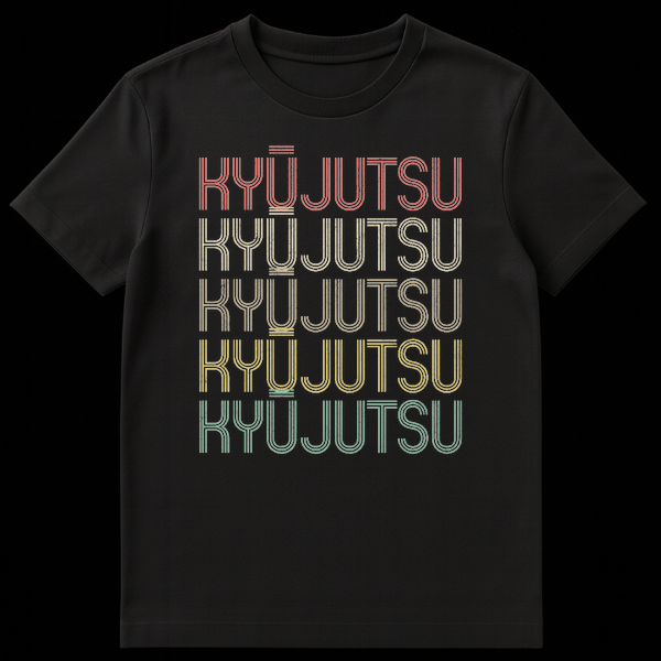 Embrace the spirit of traditional Japanese archery with our Kyū Jutsu t-shirt. Featuring the ancient martial art’s name repeated in a cool, stacked retro typography, this design pays homage to discipline and skill. Its unique vintage aesthetic and muted gradient colors make it a special statement piece for martial artists and cultural enthusiasts alike. A perfect gift for anyone passionate about Kyū Jutsu or Japanese heritage.