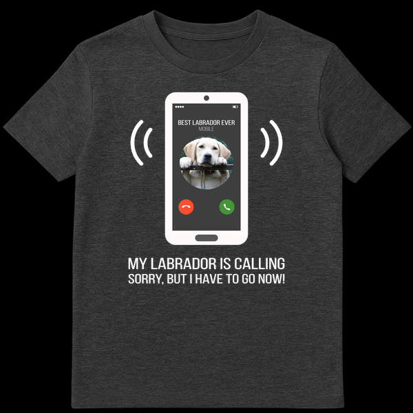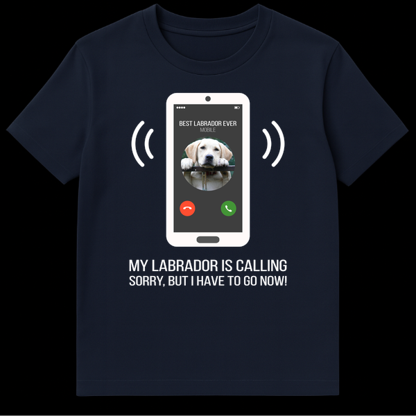 Celebrate your undeniable bond with your furry friend with this humorous Labrador t-shirt. Featuring a smartphone graphic showing an incoming call from ‘BEST LABRADOR EVER’ and the playful text ‘MY LABRADOR IS CALLING SORRY, BUT I HAVE TO GO NOW!’, it’s a relatable design for any dog parent. This shirt is a perfect gift for Labrador owners who always put their pup first, showcasing their devotion with a touch of fun.