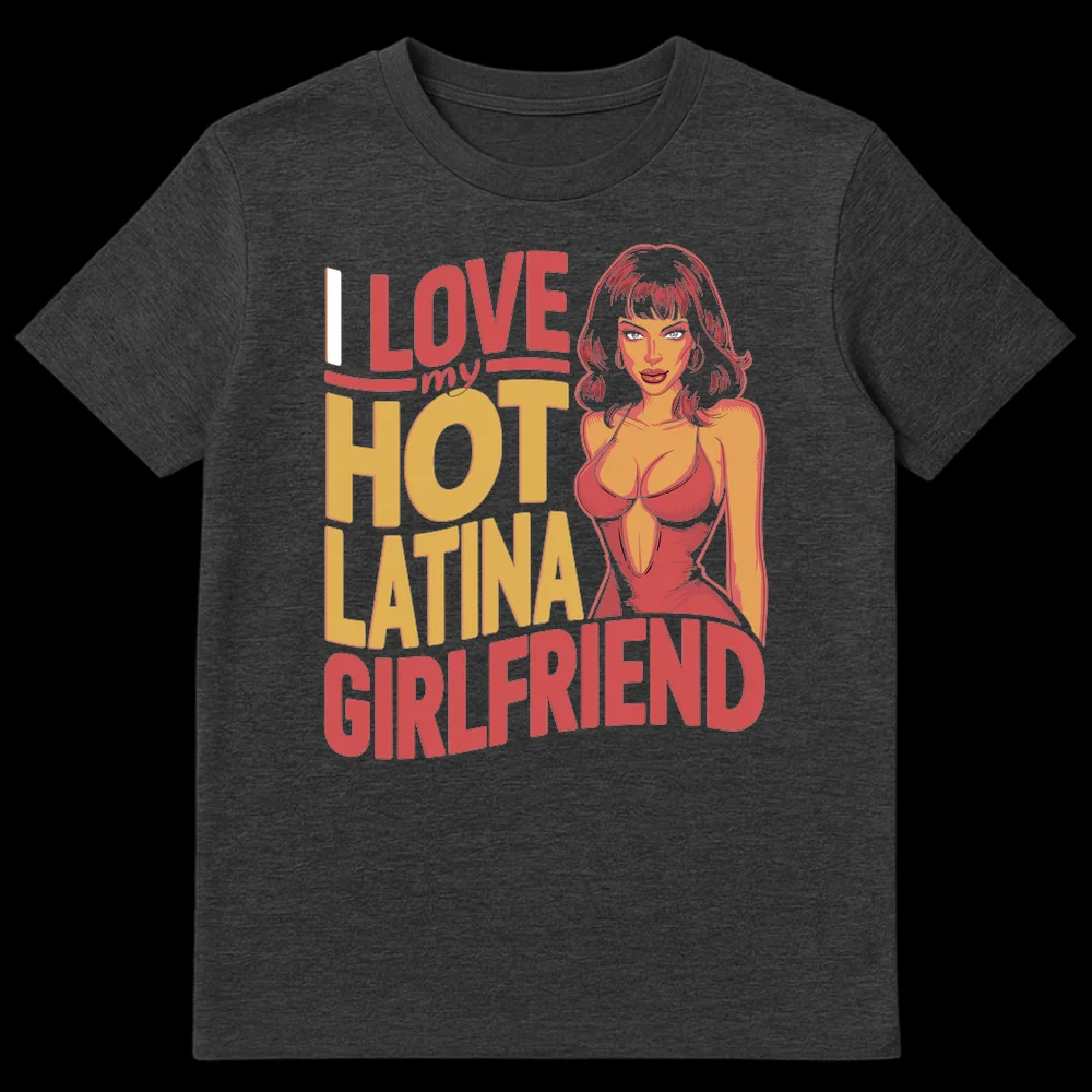 Make a powerful statement of affection and pride with this exclusive t-shirt, designed for every devoted partner of a Latina woman. The eye-catching text, “I LOVE my HOT LATINA GIRLFRIEND,” is boldly emblazoned next to a captivating, retro comic book-style pin-up figure, embodying the essence of attraction and confidence. This design isn’t just clothing; it’s a celebration of love, identity, and the special connection you share. With its vibrant colors and classic aesthetic, it highlights both the ‘hot’ allure and the ‘Latina’ cultural pride. It’s an ideal gift for boyfriends who want to publicly honor and cherish their incredible Latina girlfriend, making it a truly unique and meaningful present that speaks volumes about their passionate relationship. Wear your heart on your sleeve and show the world your devotion!