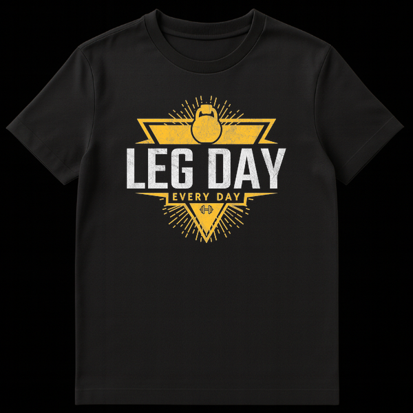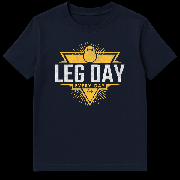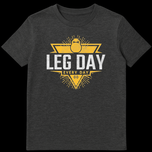 Embrace the grind with our ‘Leg Day Every Day’ T-Shirt, designed for fitness enthusiasts who believe the squat rack is a lifestyle, not just a station. This eye-catching graphic tee features massive, distressed block lettering that screams motivation, paired with classic gym iconography like kettlebells and dumbbells. The bold yellow and white layout on a dark background gives it a tough, gritty aesthetic that matches the intensity of your hardest workouts. Whether you are a bodybuilder, a powerlifter, or just someone who loves the burn of a good lunge, this shirt is the ultimate badge of honor. It makes a hilarious and supportive gift for your personal trainer, lifting partner, or anyone obsessed with building massive quads and hamstrings.