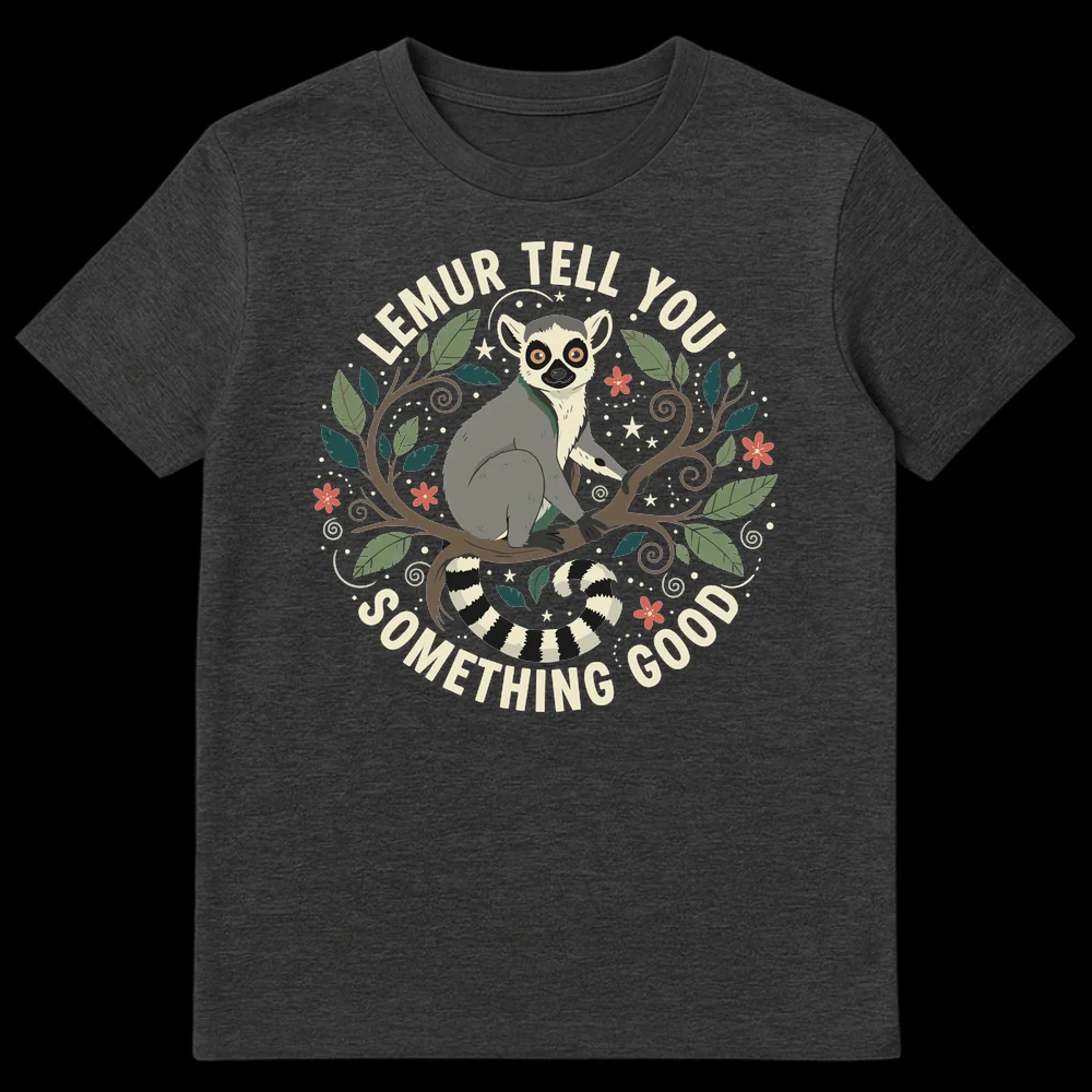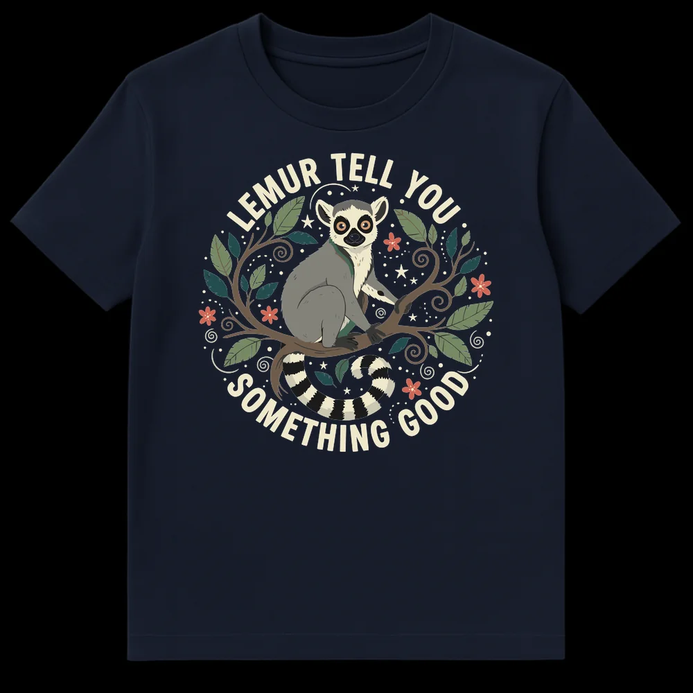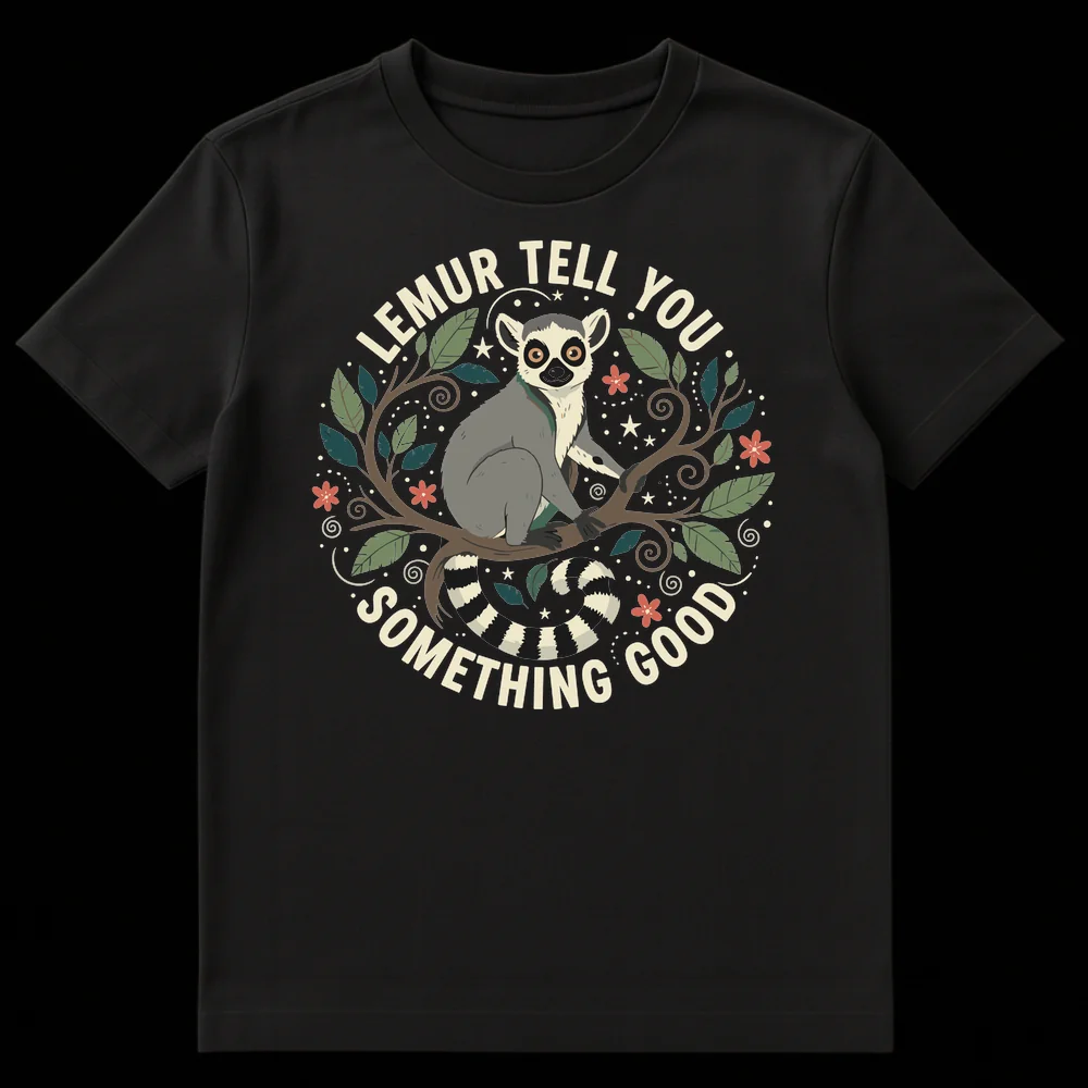 Our ‘LEMUR TELL YOU SOMETHING GOOD’ tee features a charming ring-tailed lemur amidst lush foliage, delivering a heartwarming pun. This clever animal design turns the lemur’s name into a positive, feel-good statement, perfect for anyone who loves unique wildlife and lighthearted humor. It’s an ideal gift for animal enthusiasts and pun lovers.