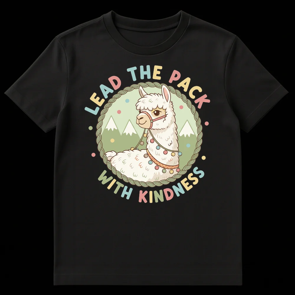 Embrace a positive mindset with our “Lead The Pack With Kindness” t-shirt, featuring a charming, smiling llama in a pastel mountain scene. This design is a gentle reminder that true leadership comes from compassion and empathy, not aggression. It’s a perfect gift for anyone who champions kindness, loves cute animals, or seeks an uplifting message in their everyday wear.