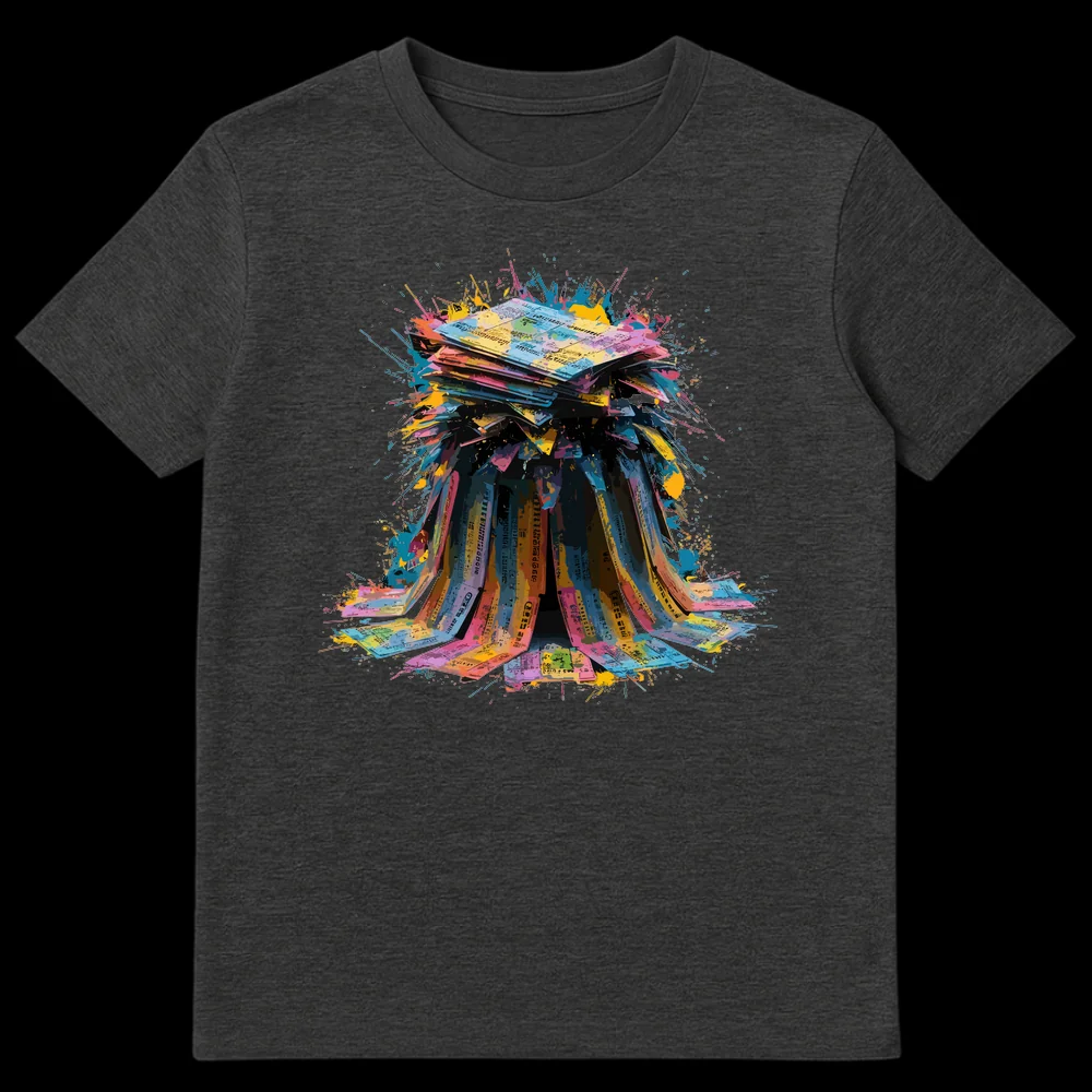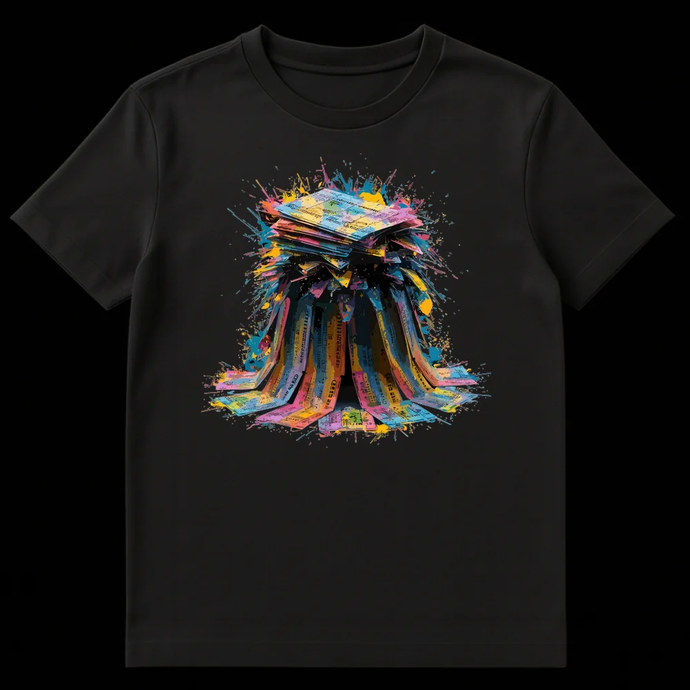 Hit the jackpot with this vibrant ticket explosion tee! Featuring an abstract burst of colorful ‘receipts,’ this design captures the exhilarating feeling of striking it rich. Perfect for the optimistic soul, it makes a fantastic gift for anyone who loves games of chance or vibrant, expressive art.