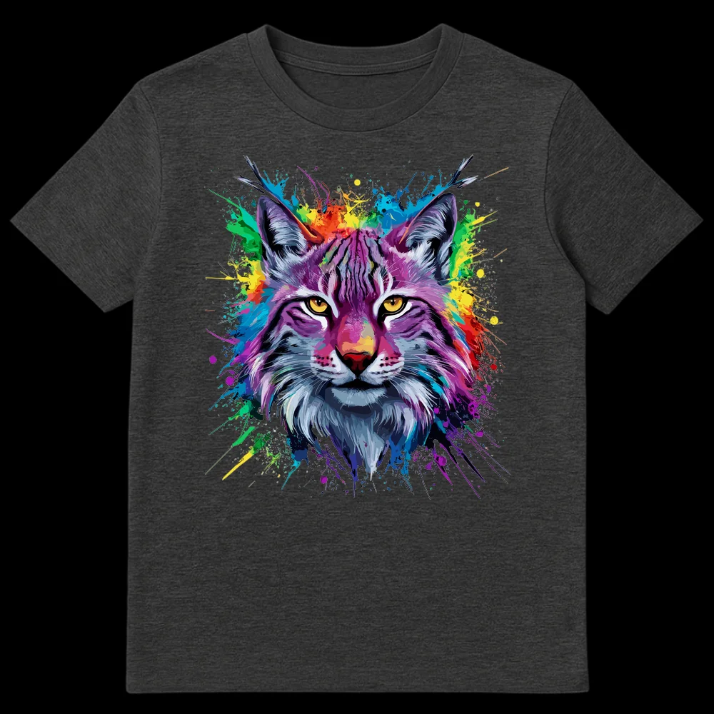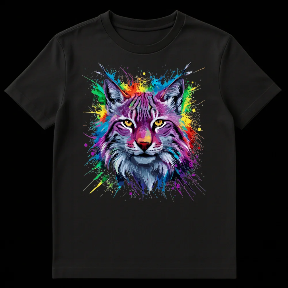 Embrace the wild with our striking Lynx Enthusiast t-shirt, featuring a majestic lynx head brought to life with an explosion of vibrant, abstract paint splatters. This eye-catching design blends pop art energy with wildlife admiration, making it a truly unique statement piece. Perfect for animal lovers, art enthusiasts, and anyone who appreciates bold, expressive fashion.
