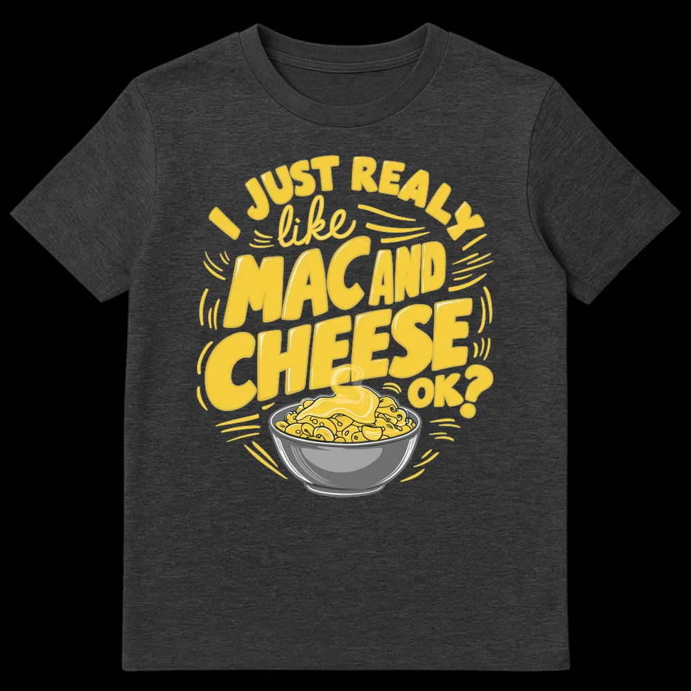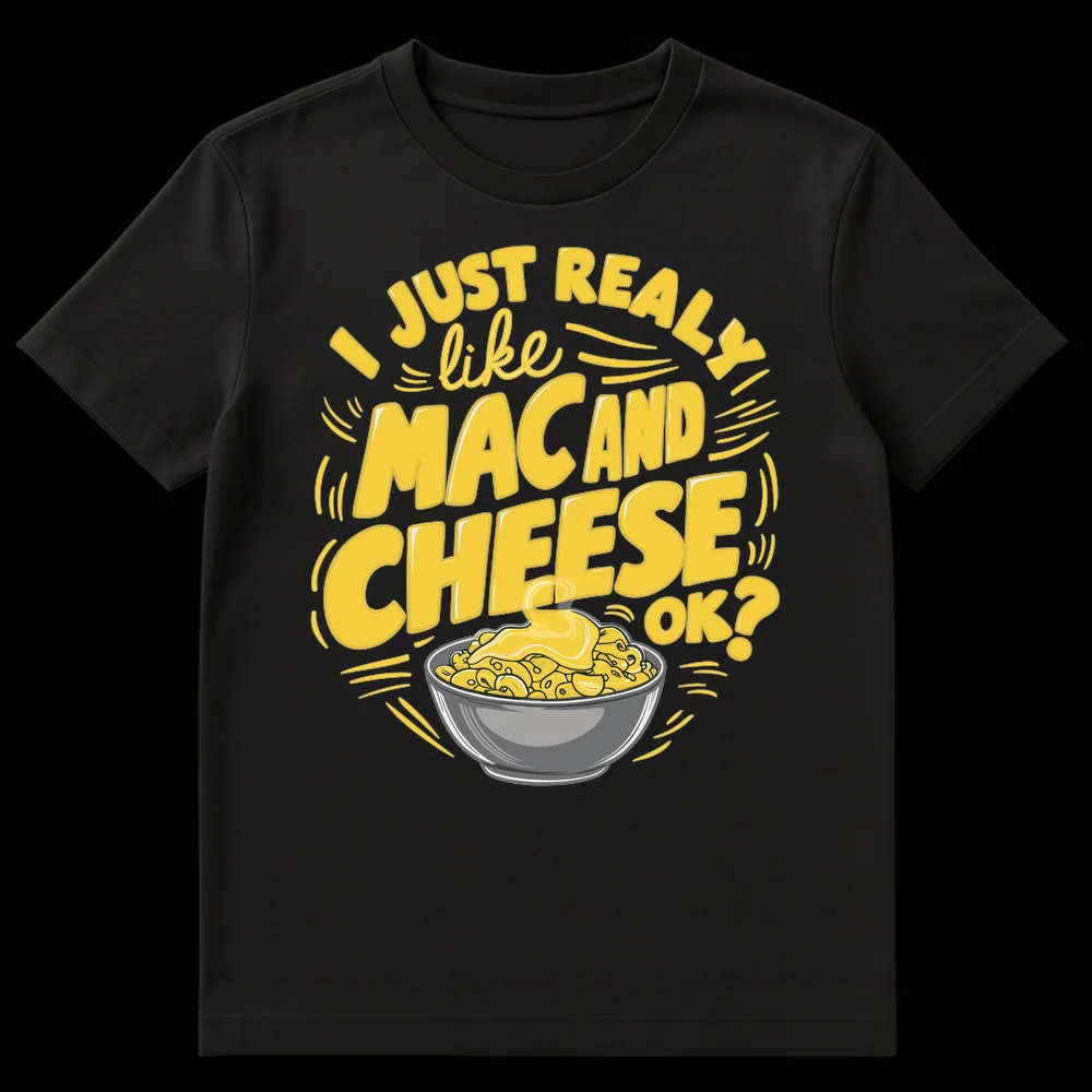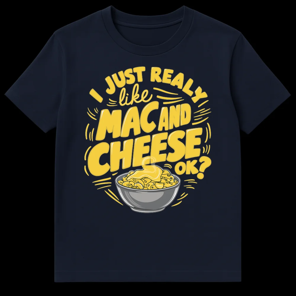 Declare your undeniable passion for the ultimate comfort food with our “I JUST REALLY like MAC AND CHEESE OK?” tee. This fun design features a vibrant, cartoonish bowl of macaroni and cheese, perfect for anyone who shares this relatable obsession. It’s a humorous and lighthearted statement, making it an ideal gift for foodies, college students, or anyone with a nostalgic love for cheesy pasta.