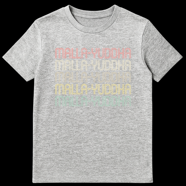 Step into history with our exclusive Malla-Yuddha t-shirt, celebrating the ancient Indian art of combat wrestling. The design prominently features ‘MALLA-YUDDHA’ repeated five times, rendered in a captivating retro 70s/80s-inspired typography with a unique gradient color scheme and subtle distressed texture on a stark black background. This isn’t just a shirt; it’s a statement of appreciation for a profound historical practice, making it special for those who value cultural depth over fleeting trends. Perfect for martial arts enthusiasts, wrestling historians, or anyone fascinated by South Asian heritage and traditional sports, this tee offers a stylish way to connect with an enduring legacy. It’s an ideal gift for practitioners, students, or simply those who admire vintage aesthetics paired with meaningful cultural references. Stand out and share your passion for Malla-Yuddha.