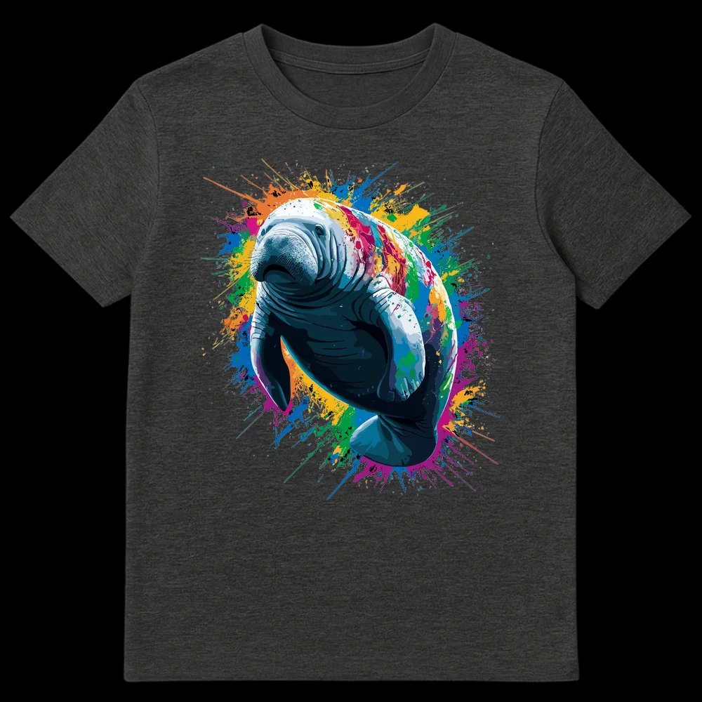 Dive into a world of color with our Vibrant Splatter Manatee T-Shirt, showcasing a serene manatee enveloped in an explosion of vivid paint. This artistic design brings the gentle giant to life with a modern, expressive twist, combining natural beauty with a burst of creative energy. It’s an ideal choice for marine life enthusiasts, art lovers, or anyone who appreciates unique, eye-catching apparel. A perfect gift for those who celebrate ocean creatures and vibrant style.