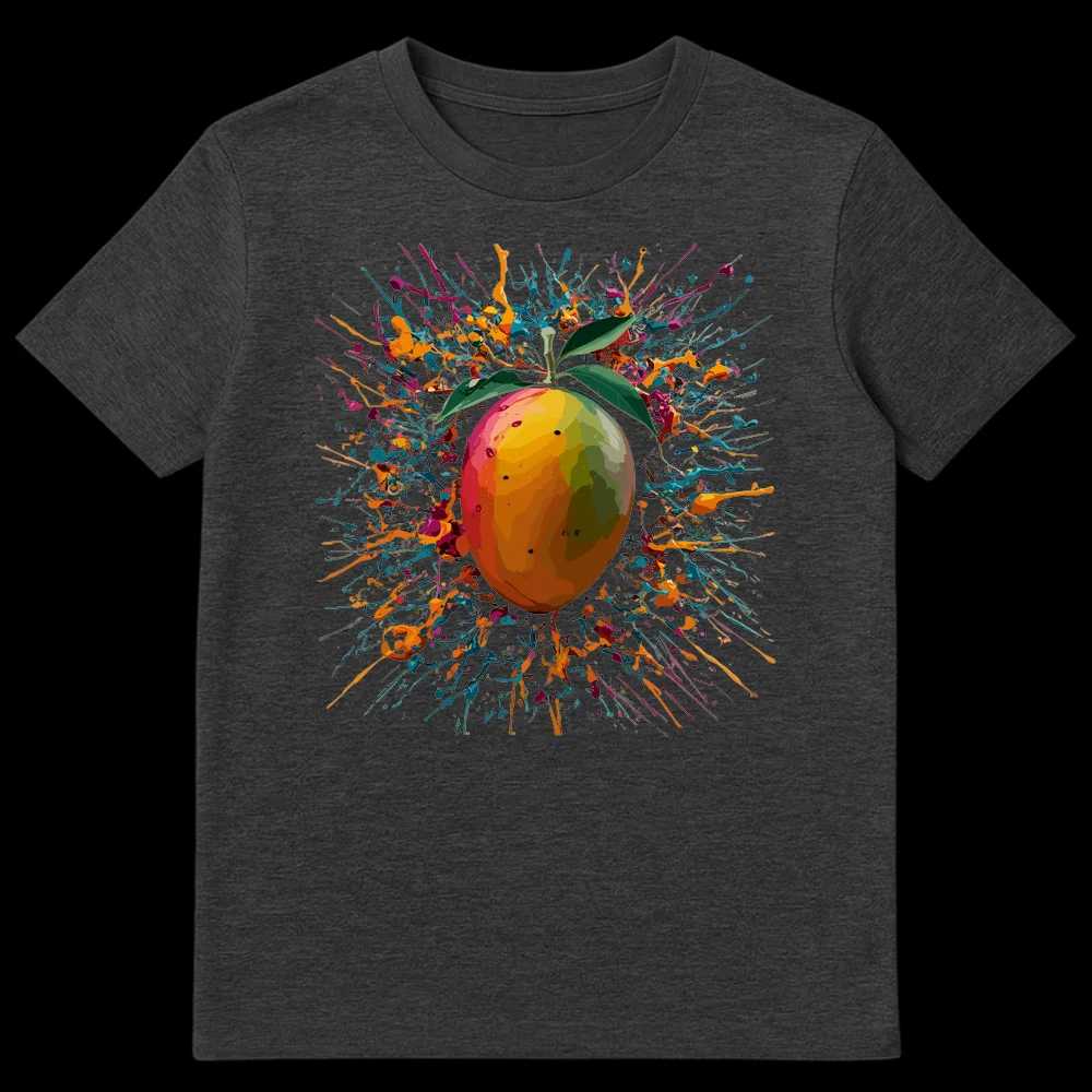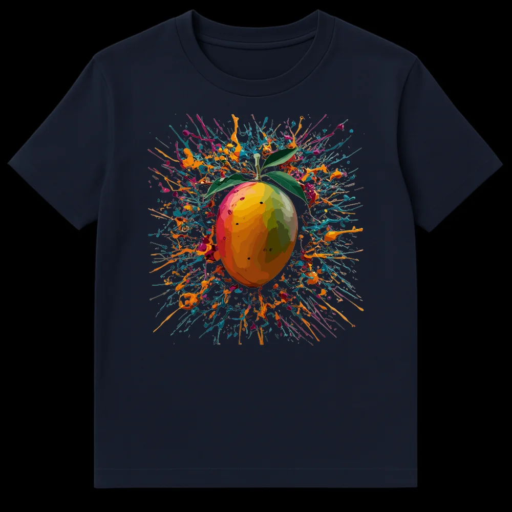 Embrace the vibrant energy of this unique t-shirt featuring a stylized, colorful mango bursting forth in a dynamic splash of paint. The expressive design, devoid of text, celebrates the intense flavors and beauty of tropical fruits through abstract art. It’s the perfect gift for anyone who loves bold graphics, unique designs, and the sweet taste of mangoes.