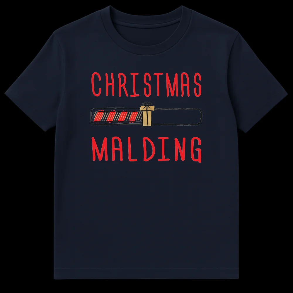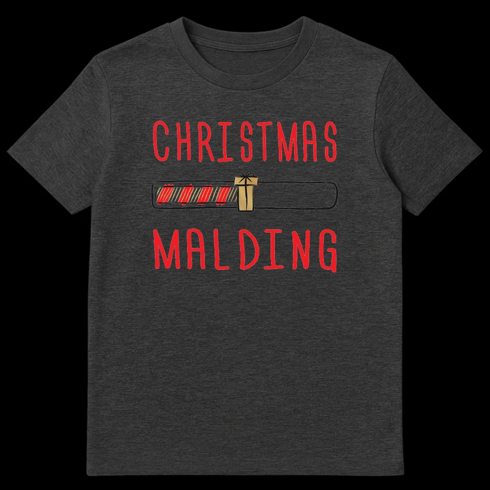 Embrace the chaos of the holidays with our “Christmas Malding” t-shirt, blending internet slang with festive frustration. This unique design features a progress bar marking the build-up of holiday stress, complete with a gift icon. It’s a humorous and relatable take on the season, perfect for gamers, meme enthusiasts, or anyone who finds Christmas a little overwhelming.