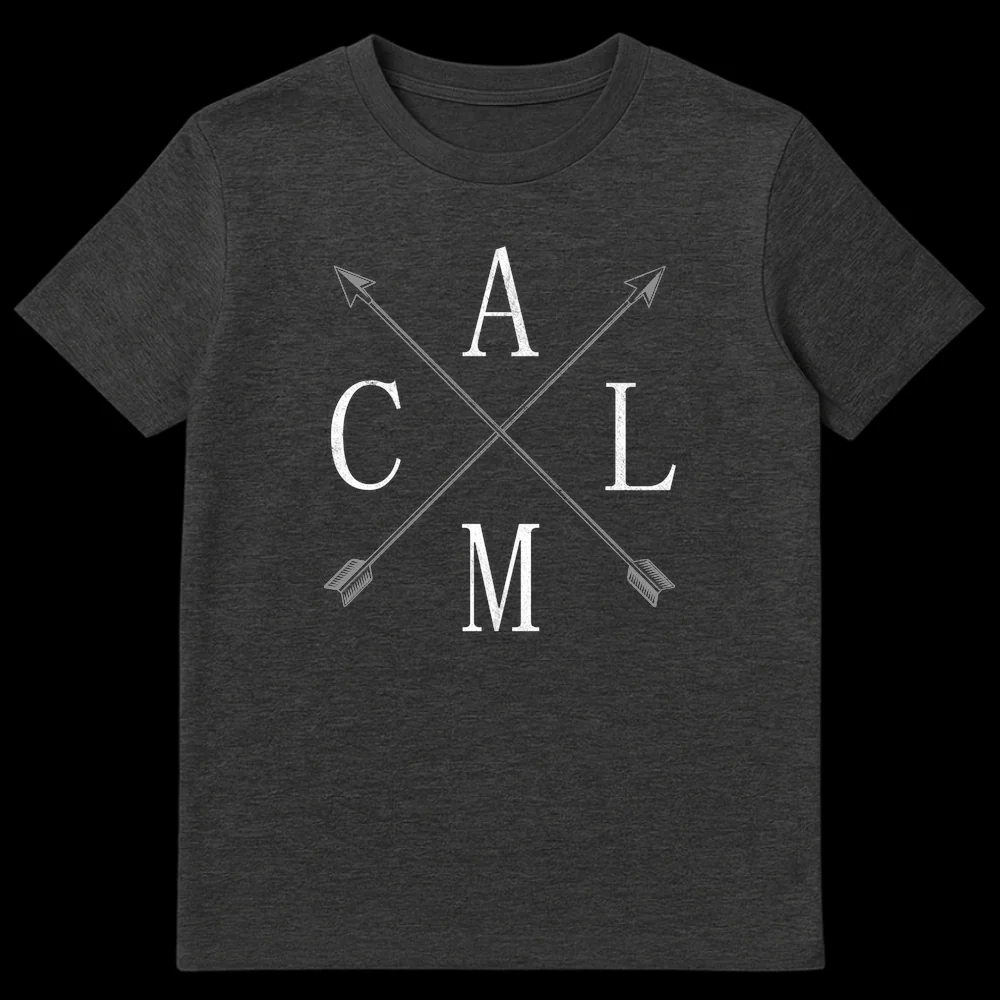 Unravel tranquility with this unique tee featuring the letters C, A, M, L artfully placed around crossed arrows. This clever design forms a visual puzzle that spells “CALM” when rearranged, offering a subtle nod to inner peace. Perfect for anyone who appreciates thoughtful, understated designs and a reminder to stay centered, making it an excellent gift for peace seekers.