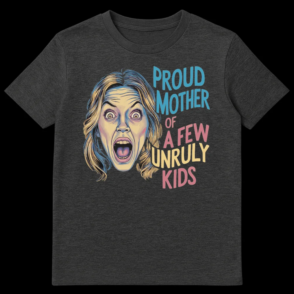 Embrace the chaos of motherhood with our ‘Proud Mother of a Few Unruly Kids’ t-shirt. This comic-inspired design features a hilariously stressed mom, perfectly capturing the relatable reality of raising wild children. It’s a fantastic, honest gift for any mom who navigates daily pandemonium with a sense of humor and fierce love.