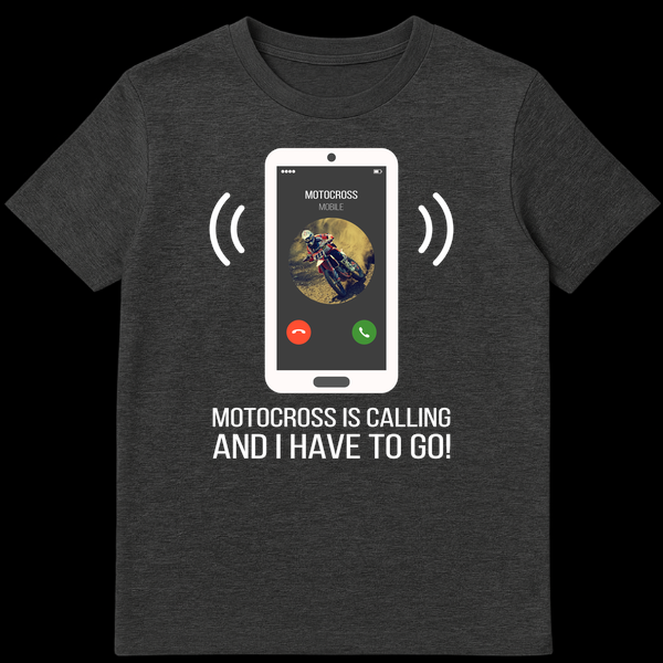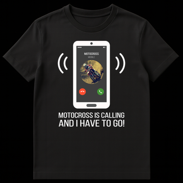 Rev up your style with this unique motocross t-shirt! Featuring a smartphone graphic showing an incoming call from “MOTOCROSS” with a cool rider profile, it perfectly captures the thrill. The bold slogan, “MOTOCROSS IS CALLING AND I HAVE TO GO!” expresses an undeniable passion for dirt bike riding. This tee is an ideal gift for any motocross fan, racer, or rider who lives for the track.