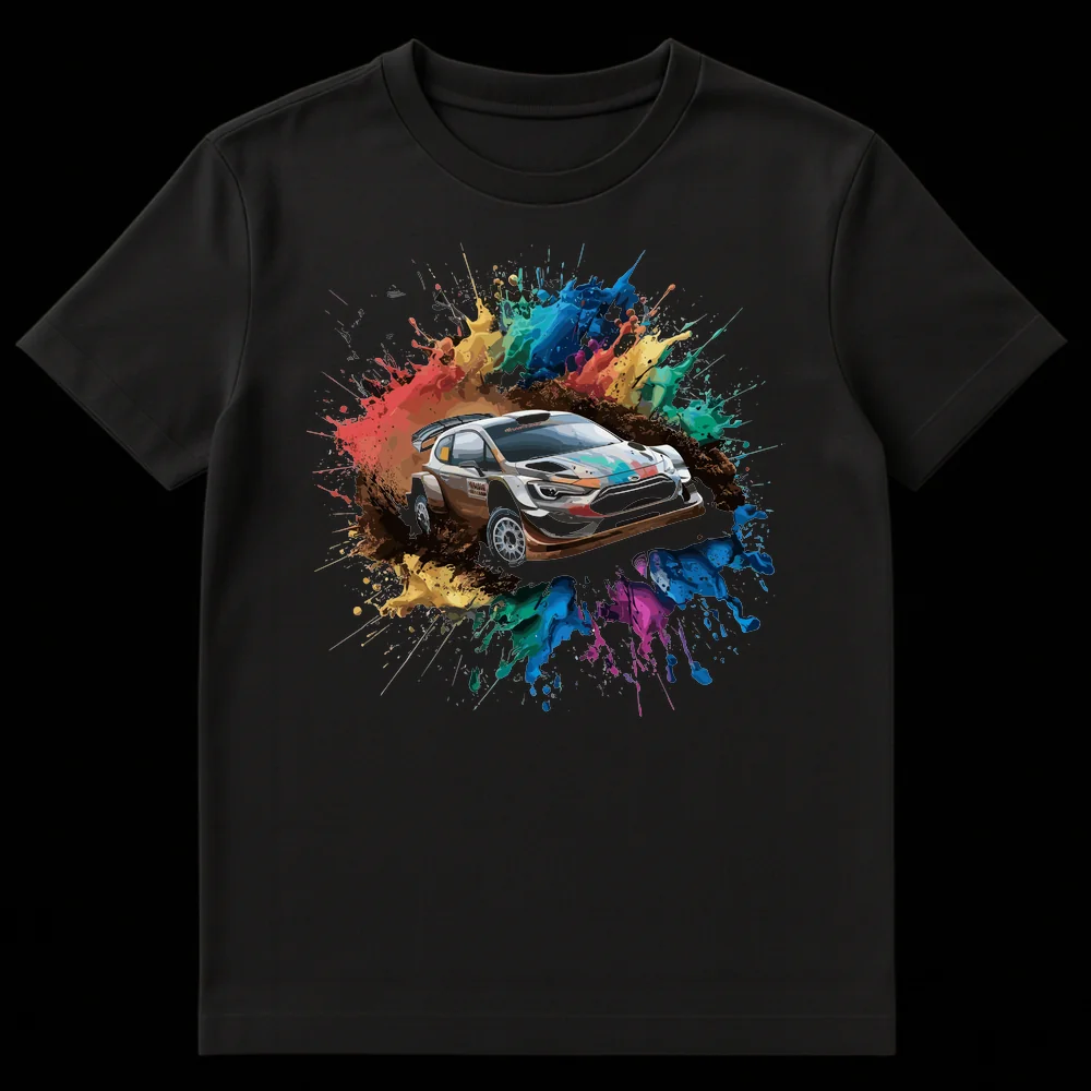 Unleash your passion for speed with this electrifying rally car t-shirt, showcasing a high-energy vehicle in a vibrant paint splatter explosion. This unique design captures the adrenaline of motorsports, merging powerful performance with artistic chaos. It’s the perfect gift for rally fans, car enthusiasts, or anyone who loves bold, dynamic automotive art.