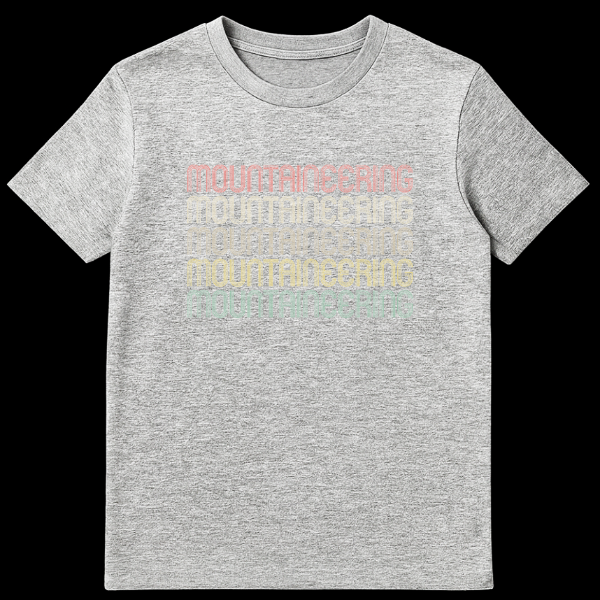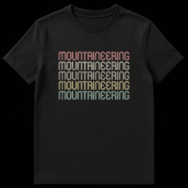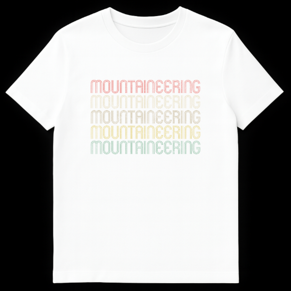 Embrace your love for the peaks with our vintage-inspired Mountaineering t-shirt. Featuring the word “MOUNTAINEERING” repeated five times in a classic, distressed retro font with a vibrant gradient, this design celebrates your passion for mountain adventures. It’s the perfect gift for hikers, climbers, and any outdoor enthusiast who appreciates a timeless, authentic style.