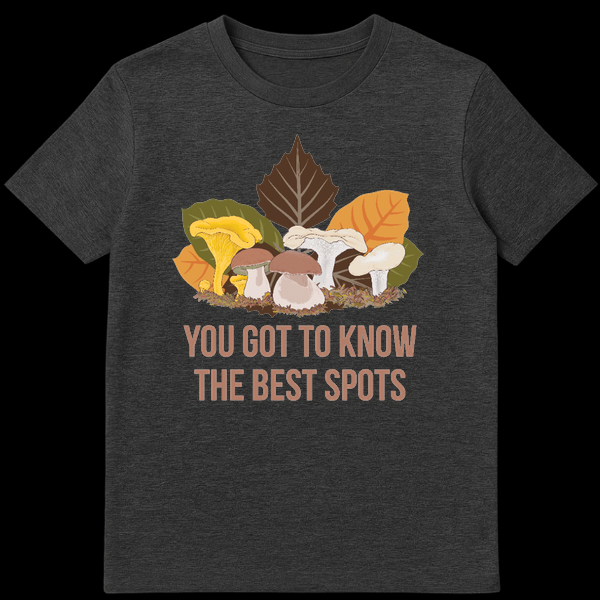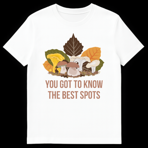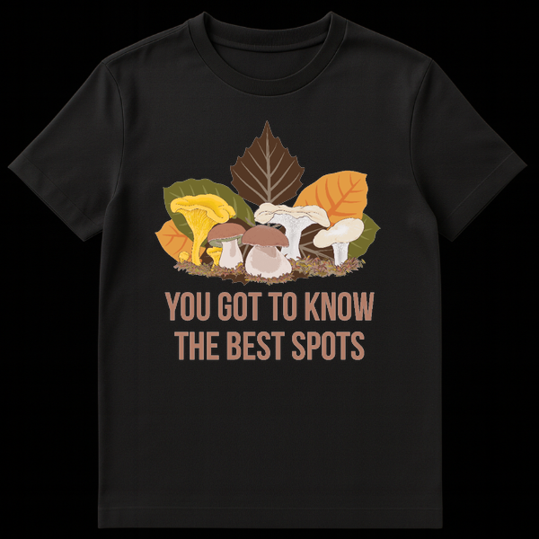 For the dedicated forager, nothing beats the satisfaction of returning to that secret patch of woods where the chanterelles and porcini grow thick. This design captures that autumnal magic perfectly. The detailed artwork showcases a bountiful harvest of wild mushrooms resting on moss, framed by rustic fall foliage. The slogan, ‘You Got To Know The Best Spots,’ adds a layer of inside humor that only fellow mushroom hunters will truly appreciate—because we never share our coordinates! Whether you are hunting for morels in the spring or boletes in the fall, this apparel is a great way to show off your passion for mycology. It is an ideal birthday or holiday present for the mushroom whisperer in your life.